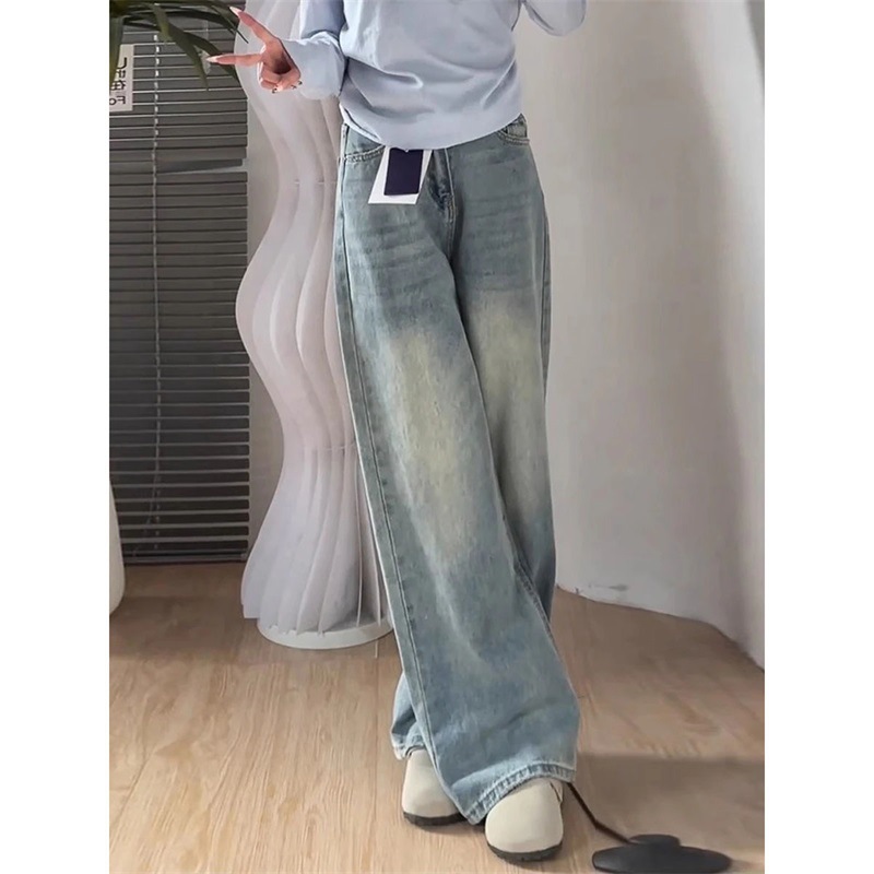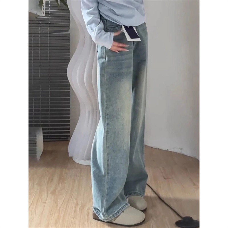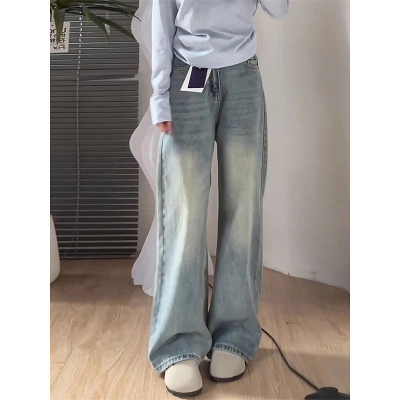 여성용 스몰 아메리칸 레트로 라이트 컬러 와이드 레그 청바지, 하이 웨이스트 루즈 슬리밍 스트레이트 팬츠, 드레이피 바닥 길이 바지스토어 가기