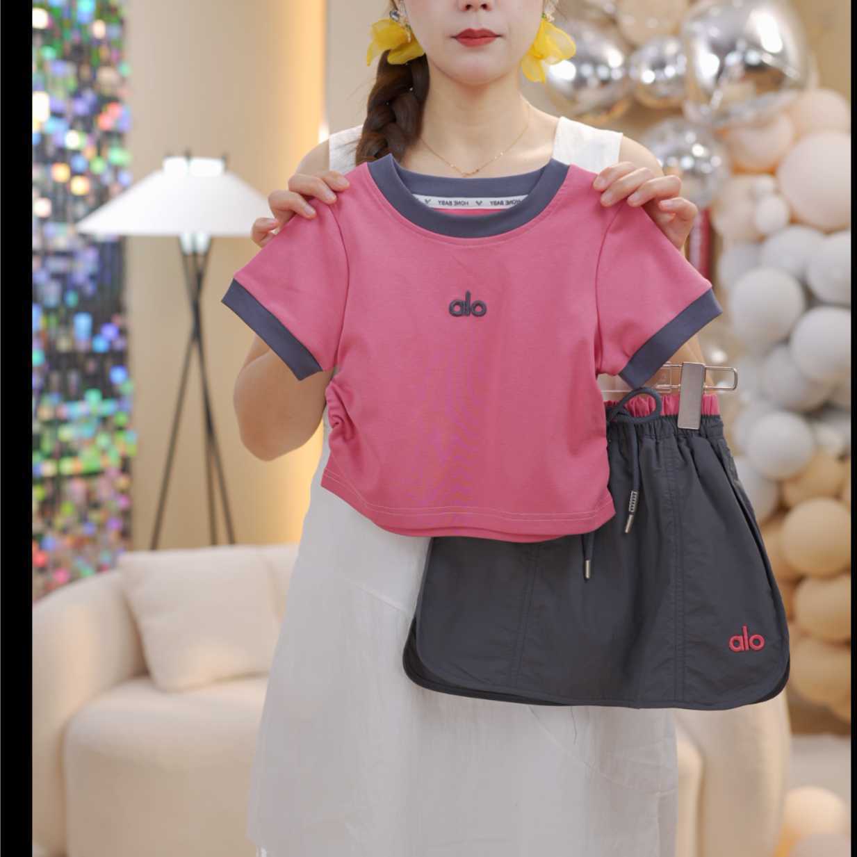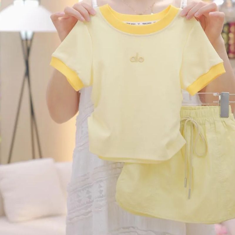 여자 여름 얇은 양복 한국 스타일 베이비 순면 반팔 스포츠 짧은 치마 바지 대비 색상 티셔츠 투피스 아동복스토어 가기