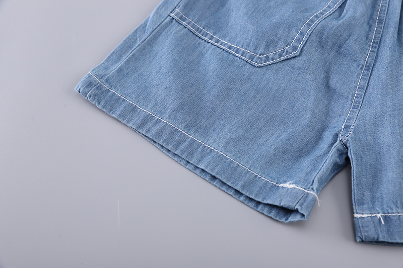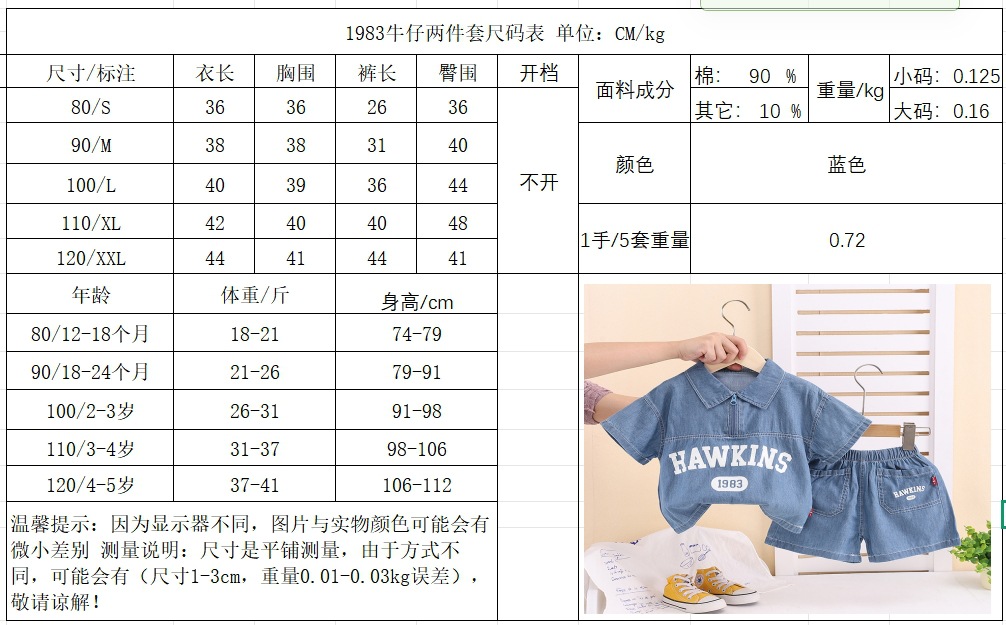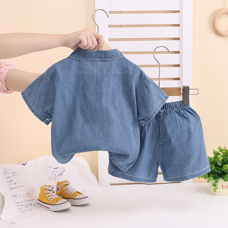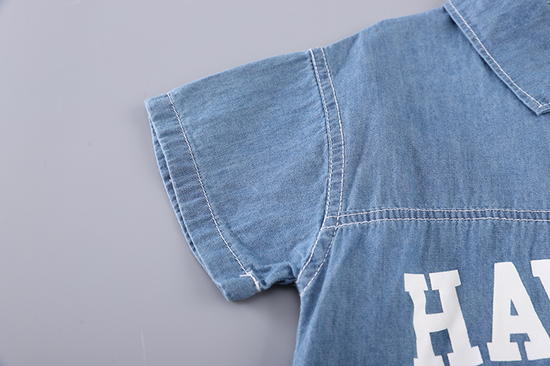 여름 새로운 유행 소년 여름 정장 영어 데님 반팔 정장 직접 판매 대외 무역 크로스 보더 소년 정장