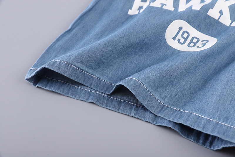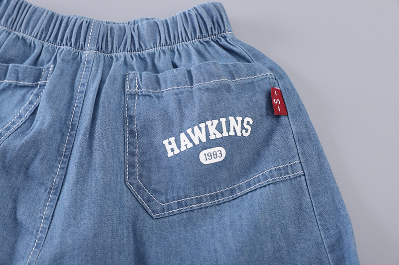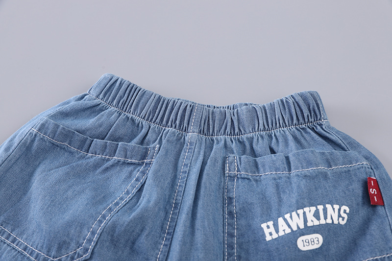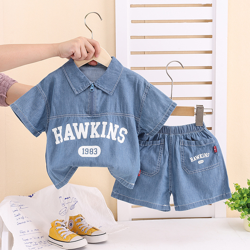 여름 새로운 유행 소년 여름 정장 영어 데님 반팔 정장 직접 판매 대외 무역 크로스 보더 소년 정장스토어 가기
