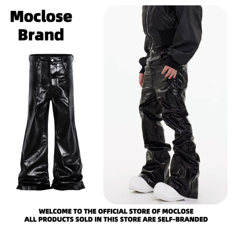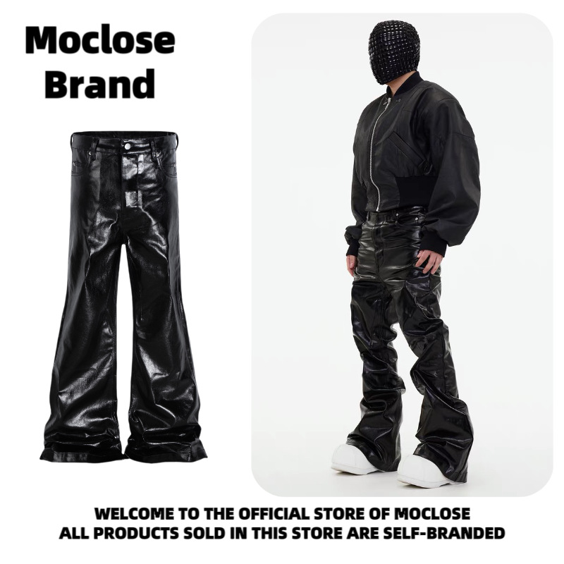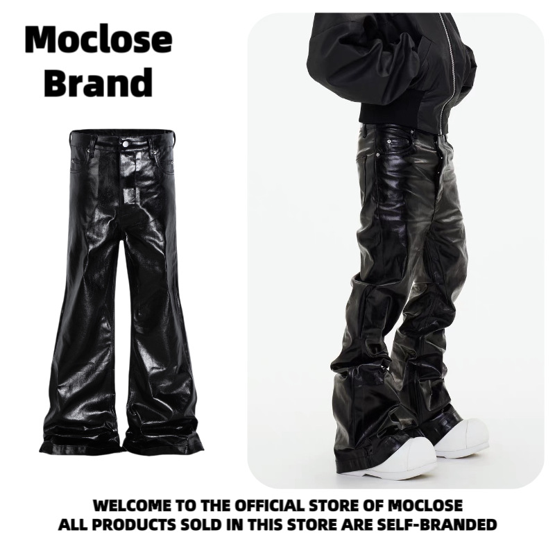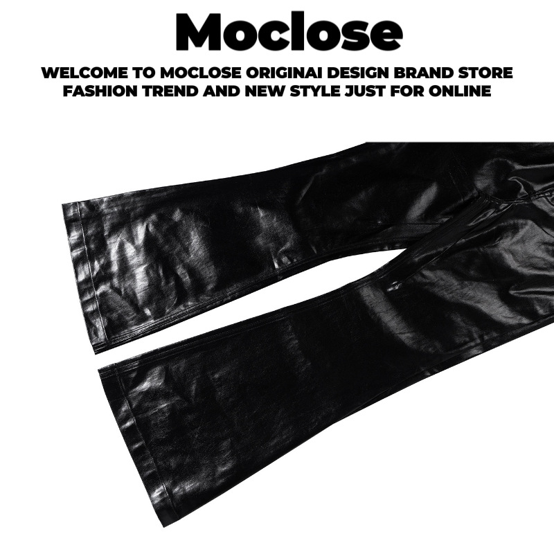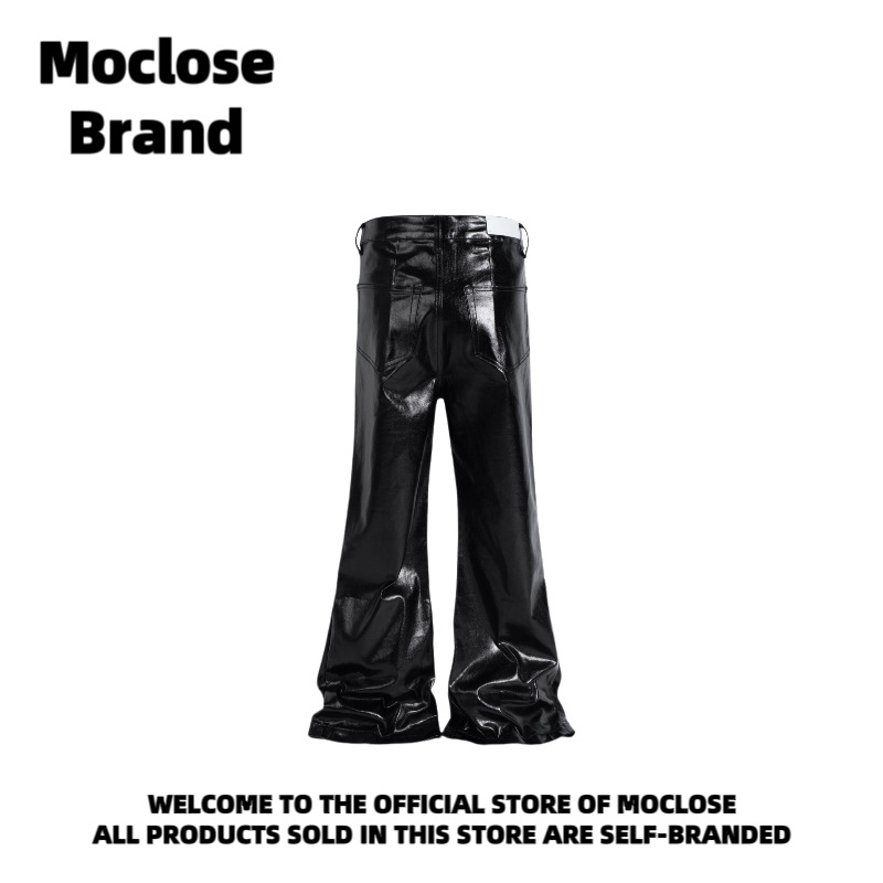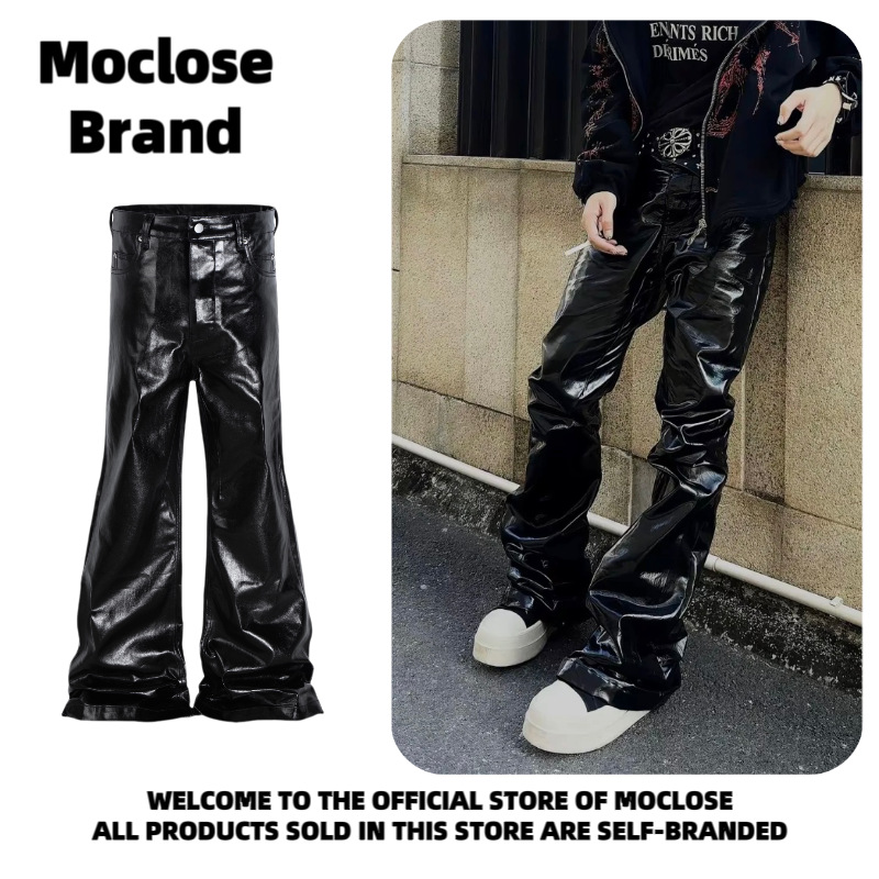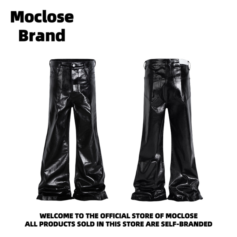 Moclose 아메리칸 하이 스트리트 다크 코팅 글로시 남성 및 여성 트렌디 브랜드 슬림핏 와이드 레그 플레어 바닥 길이 바지스토어 가기