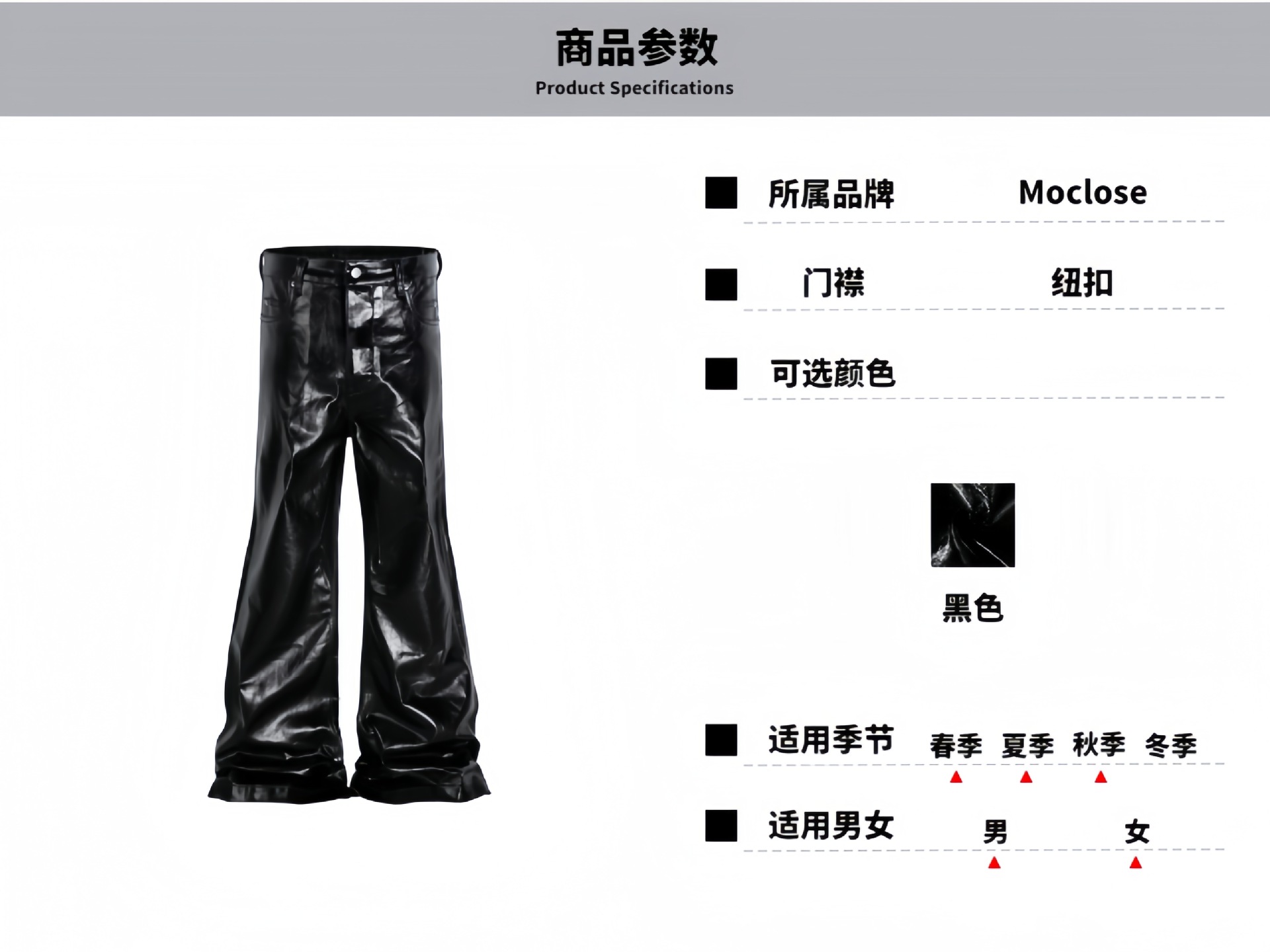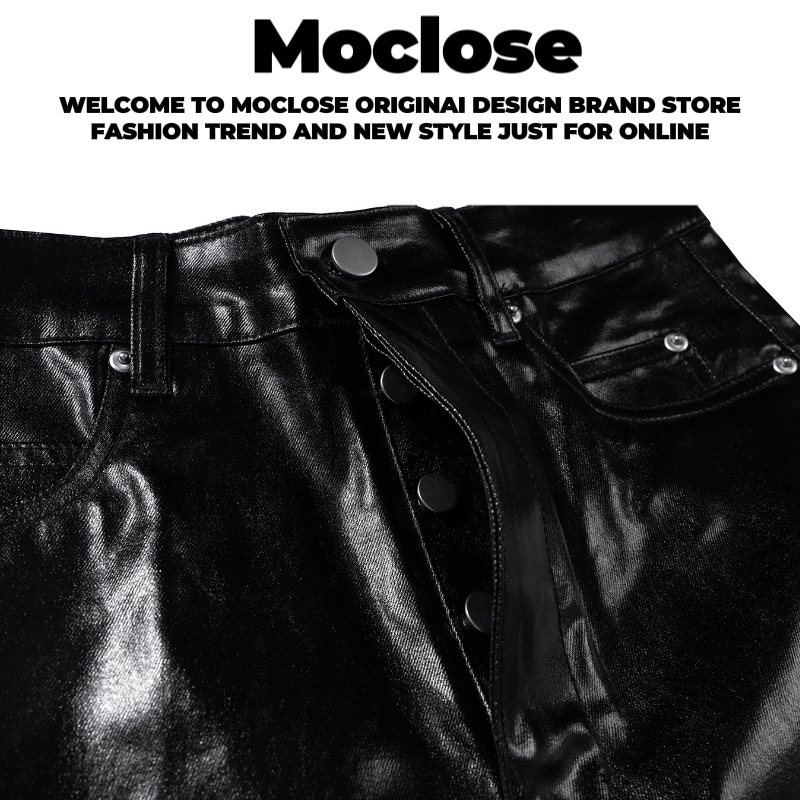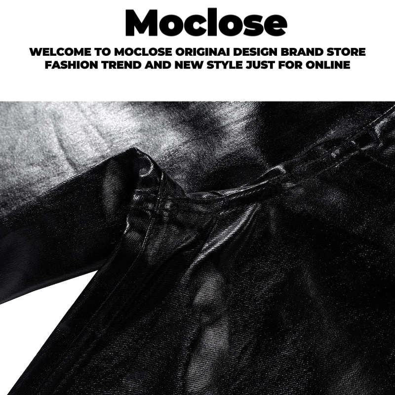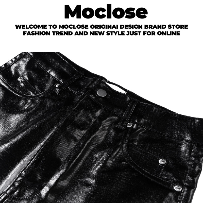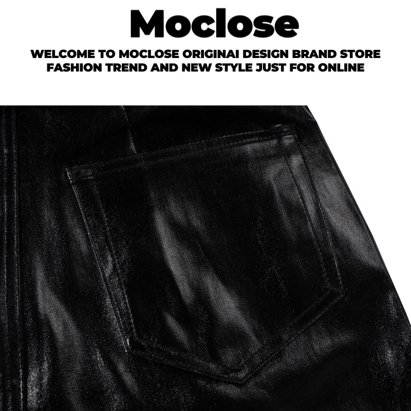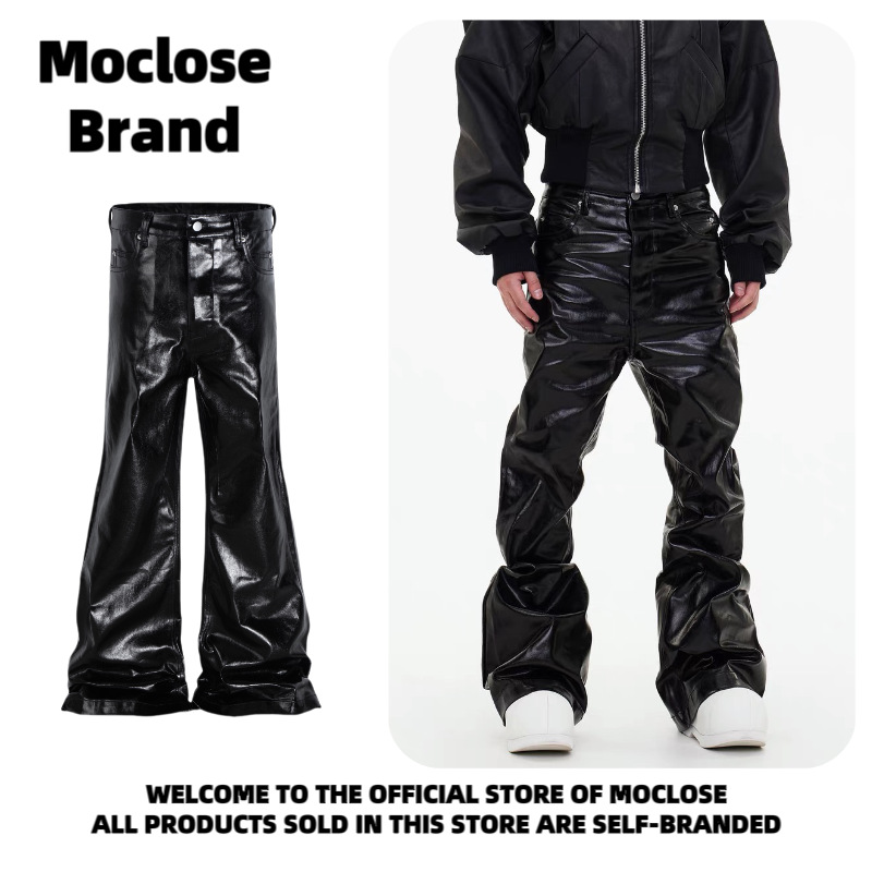 Moclose 아메리칸 하이 스트리트 다크 코팅 글로시 남성 및 여성 트렌디 브랜드 슬림핏 와이드 레그 플레어 바닥 길이 바지스토어 가기