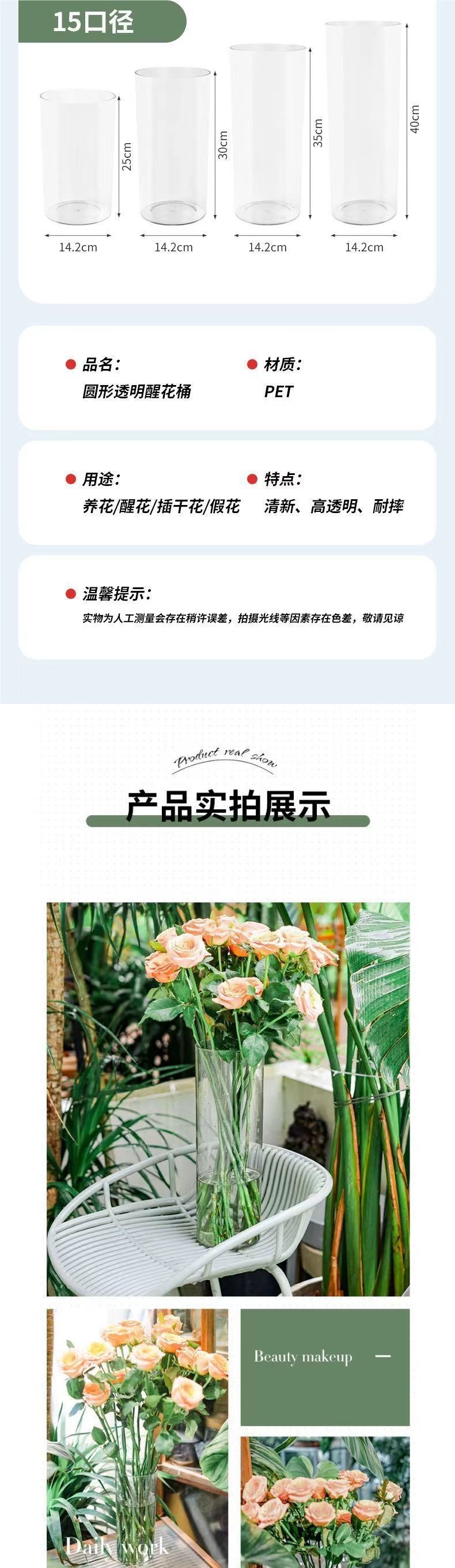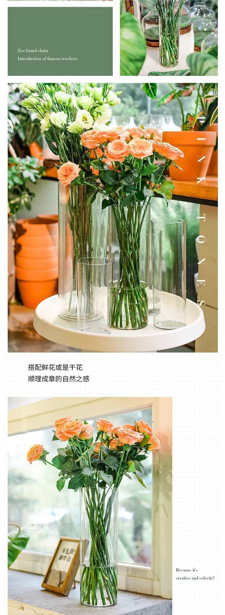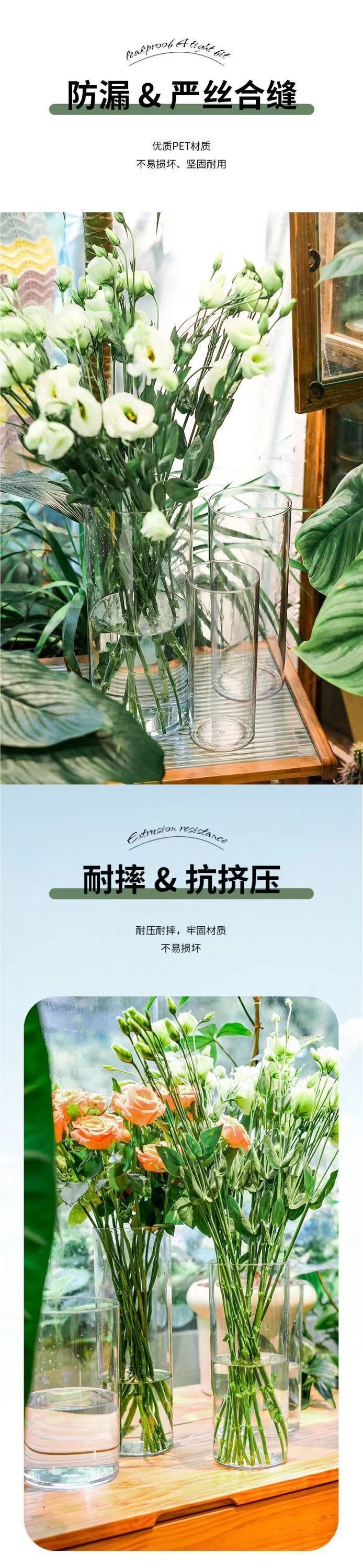 아크릴 낙하 방지 꽃병 장식품, 거실 꽃꽂이, 투명 물재배 부자 대나무, 직선형, 가벼운 럭셔리 꽃통스토어 가기
