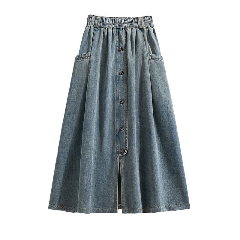여아 데님 스커트, 큰 아동 데님 스커트, 새로운 얇고 부드러운 데님 스커트, 긴 스타일, 2025 새로운 스타일