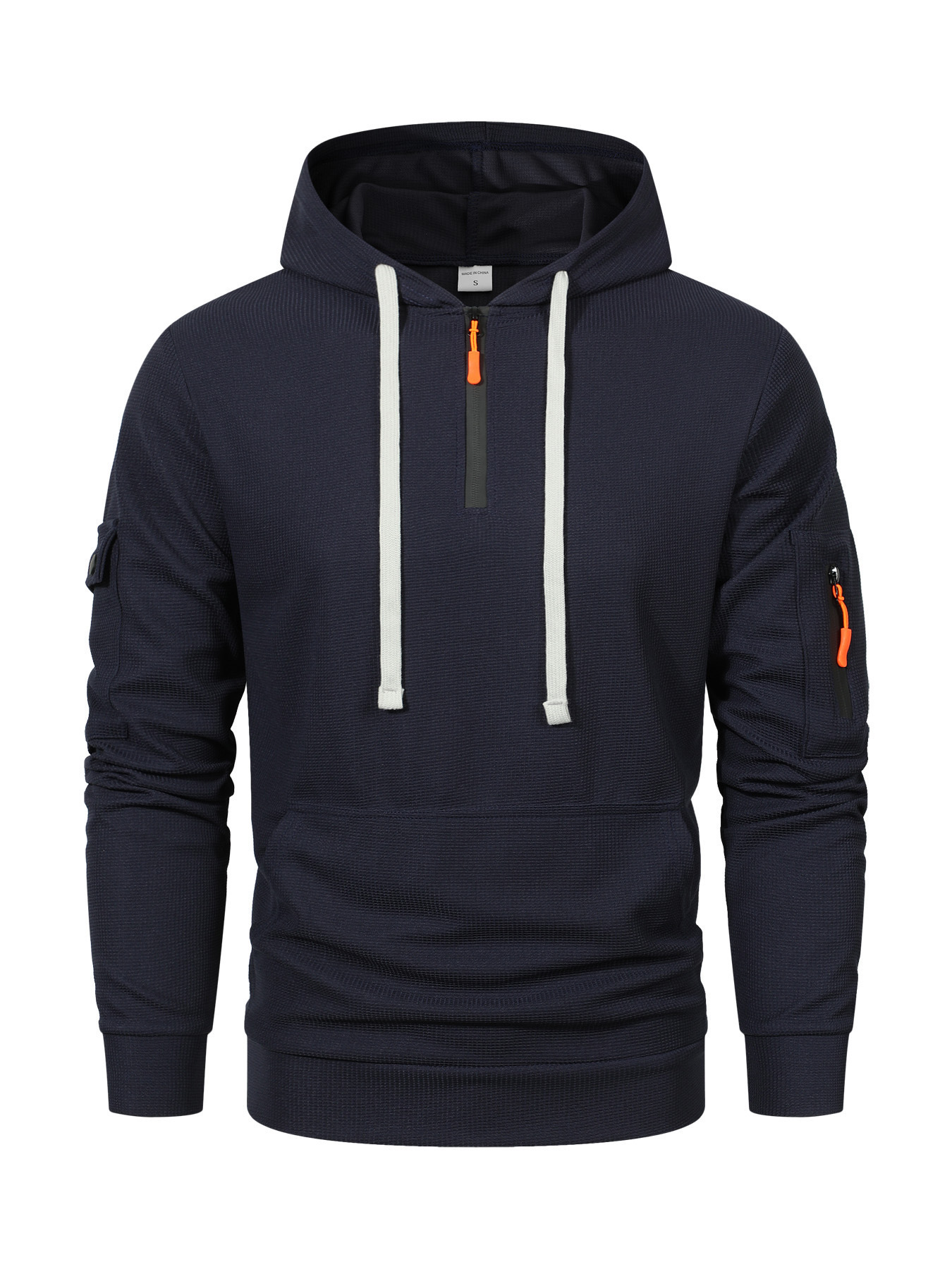 Lianshan County 크로스보더 하프 지퍼 스웨트셔츠 후드 지퍼 멀티 포켓 풀오버 남성용 스포츠 및 레저 스웨트셔츠 남성용
