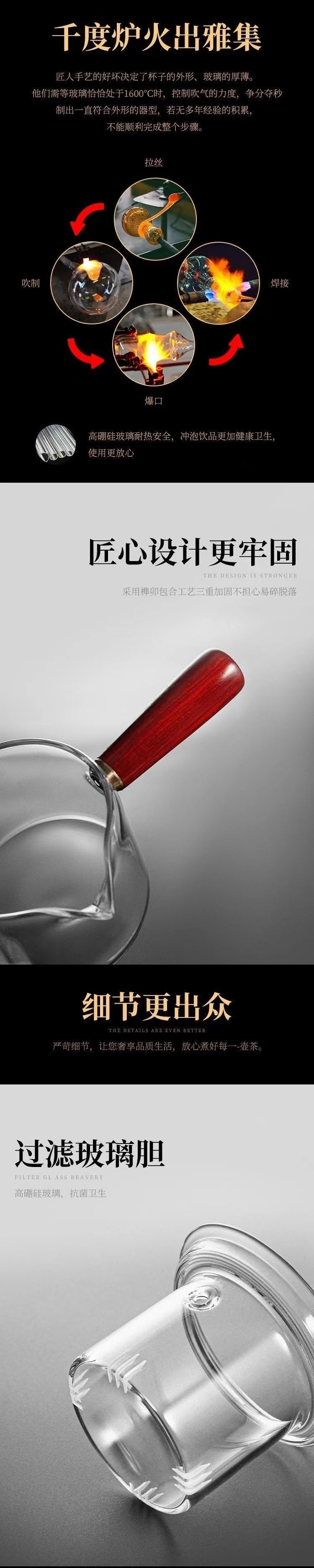 • 600ml 찻주전자 + 차 배수구 + 마호가니 손잡이, 내열 및 방폭