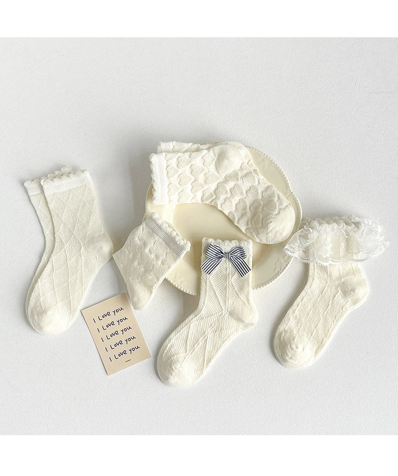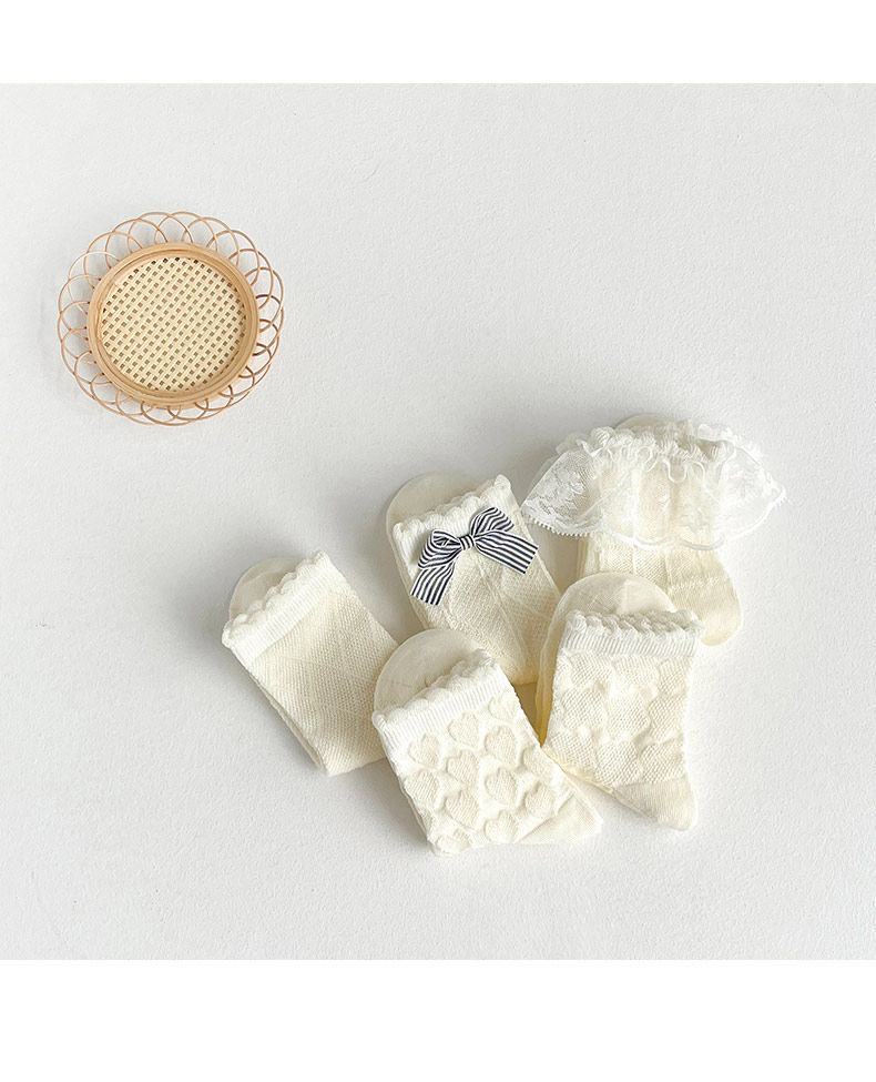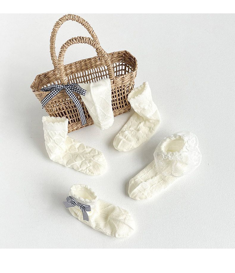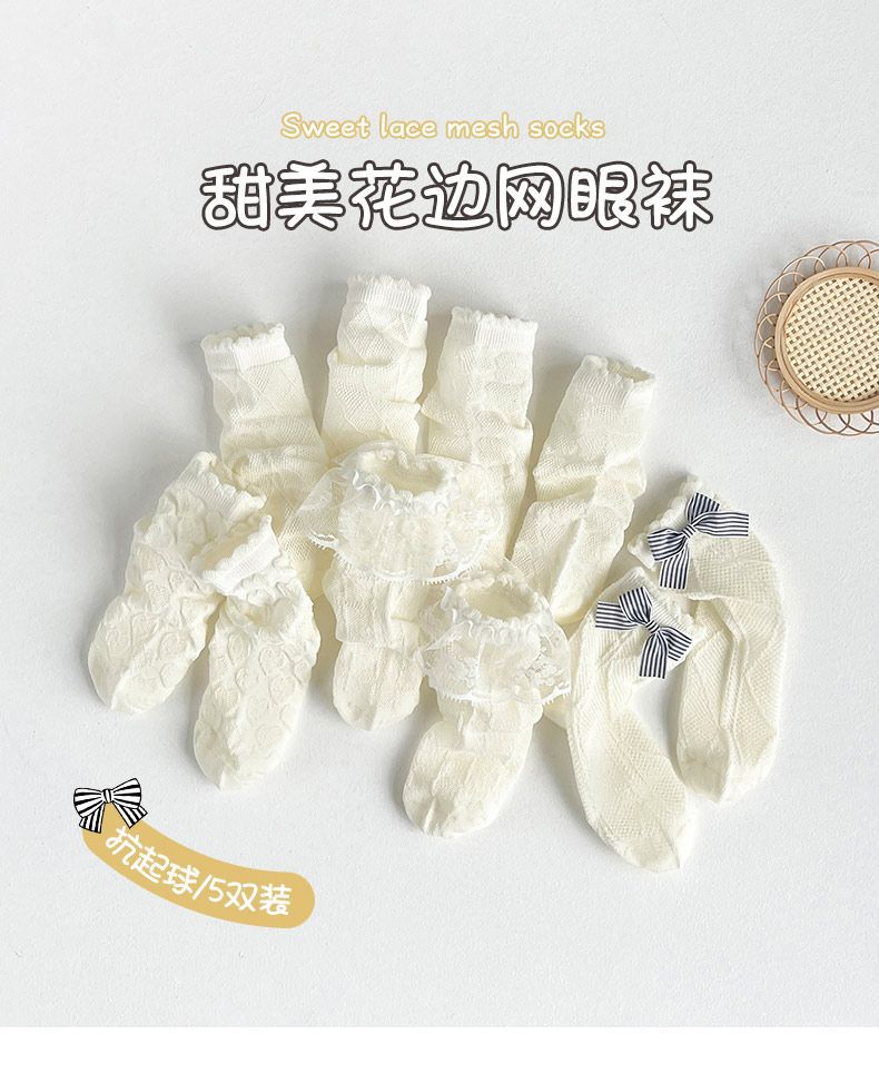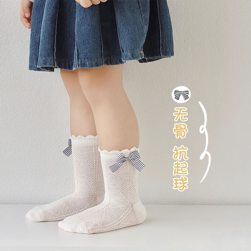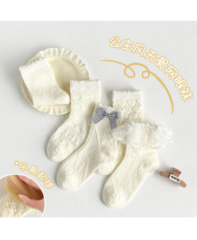 봄과 여름 새로운 뼈없는 메쉬 어린이 양말 소녀 여름 공주 양말 로리타 레이스 솔리드 컬러 보우 양말 도매
