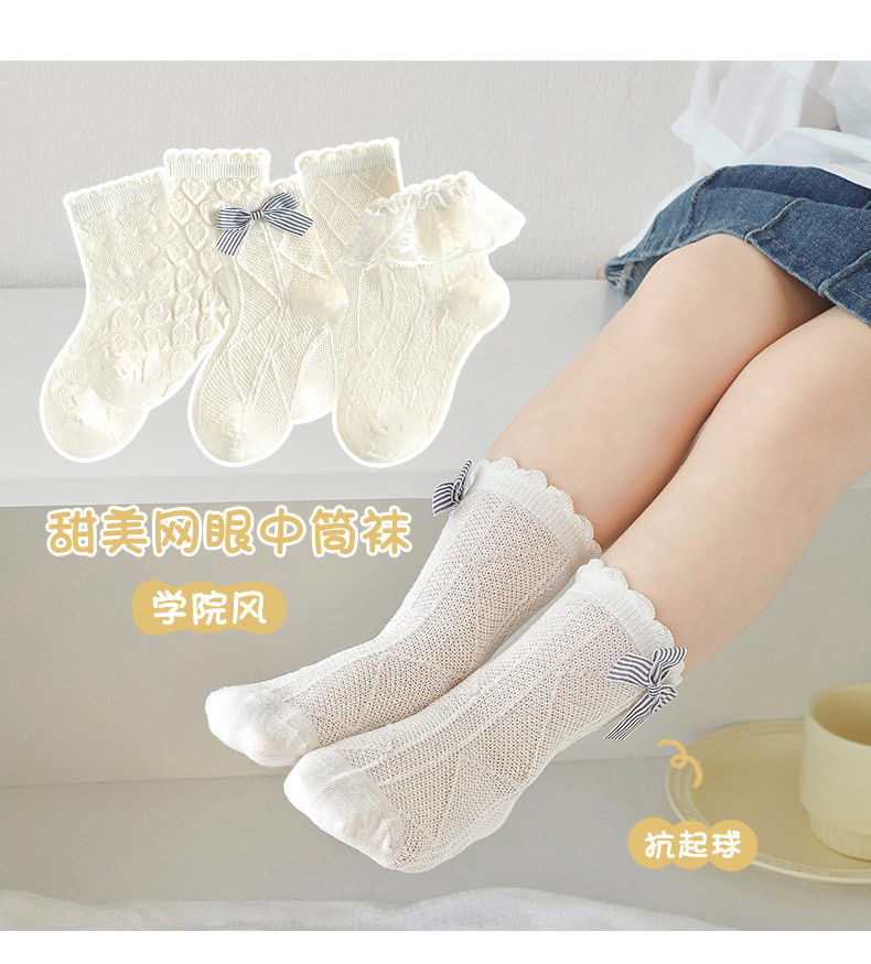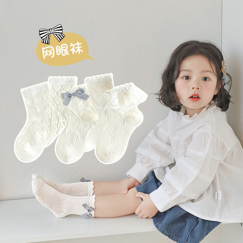 봄과 여름 새로운 뼈없는 메쉬 어린이 양말 소녀 여름 공주 양말 로리타 레이스 솔리드 컬러 보우 양말 도매스토어 가기