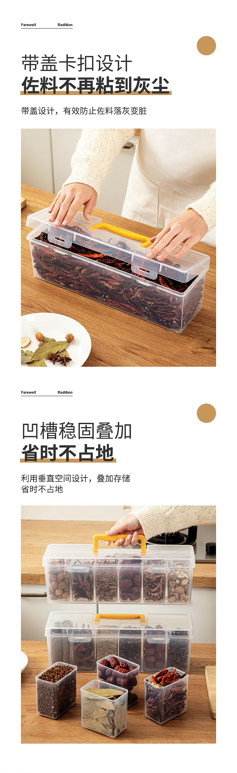 香料收纳盒家用佐料调料分格八角桂皮花椒干辣椒储物盒大料厨房