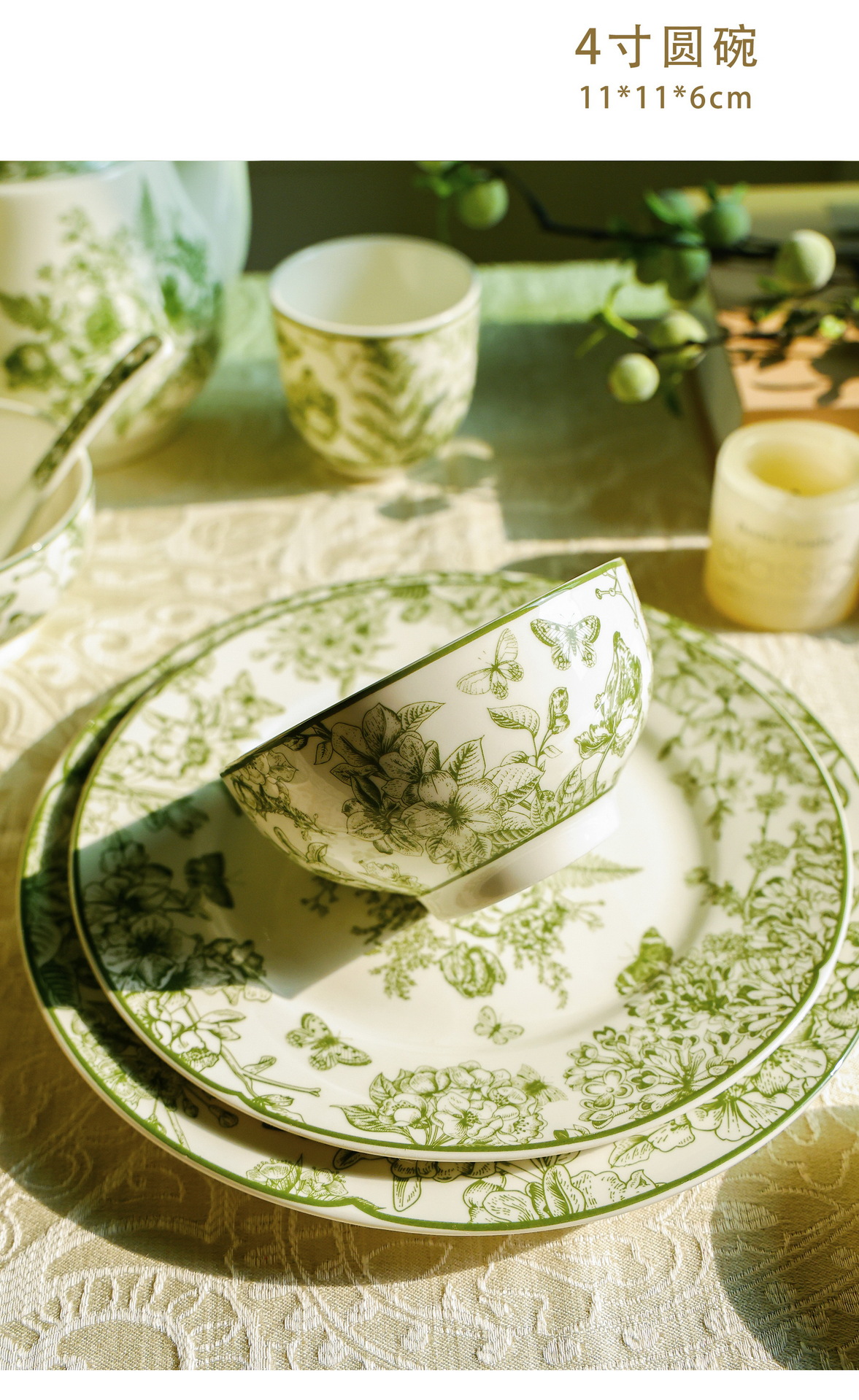 유약 색상 복고풍 프랑스 녹색 세라믹 식기 접시 가정용 접시 접시 둥근 고가 요리 밥 그릇