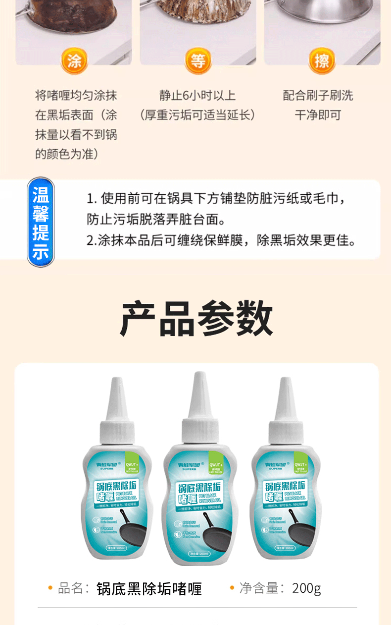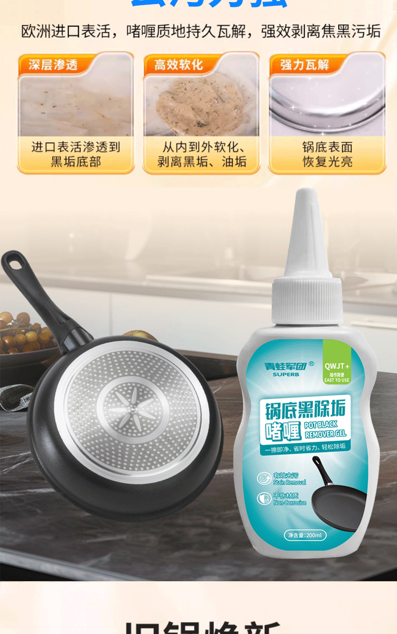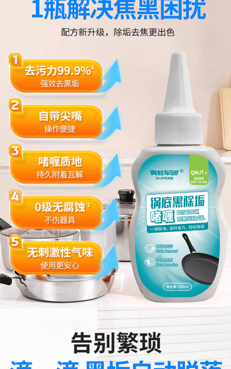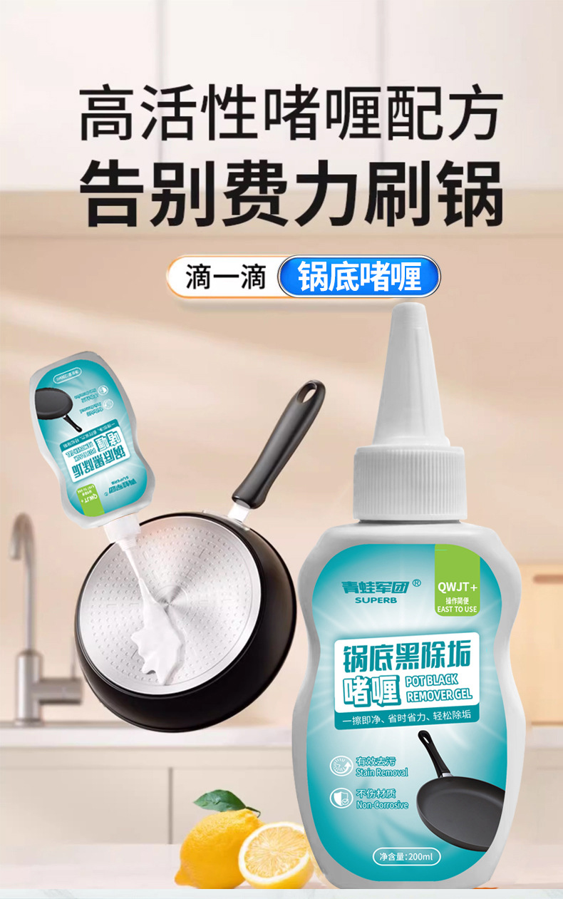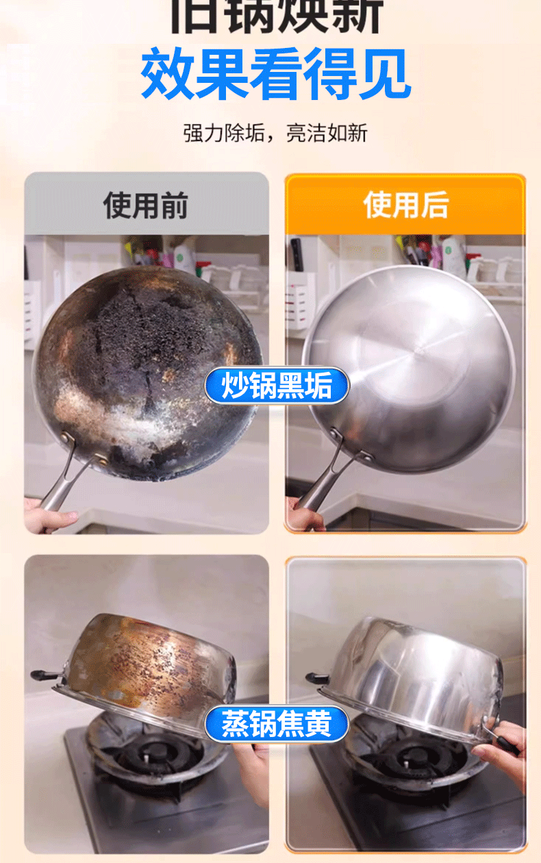 냄비 바닥 검은 물때 젤 클리너는 스테인리스 주방 냄비의 오염을 효과적으로 제거하고 녹과 중유 얼룩을 강력하게 제거합니다.