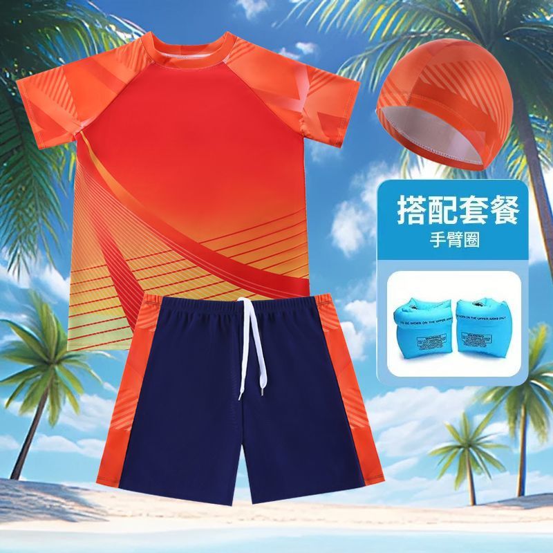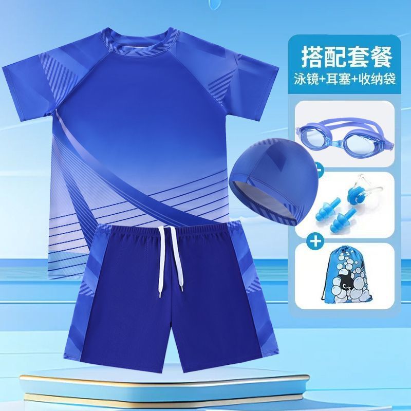 어린이 수영복 소년 중대형 어린이 2025 새로운 소년 스플릿 수영복 전문 훈련 속건성 수영 트렁크 세트