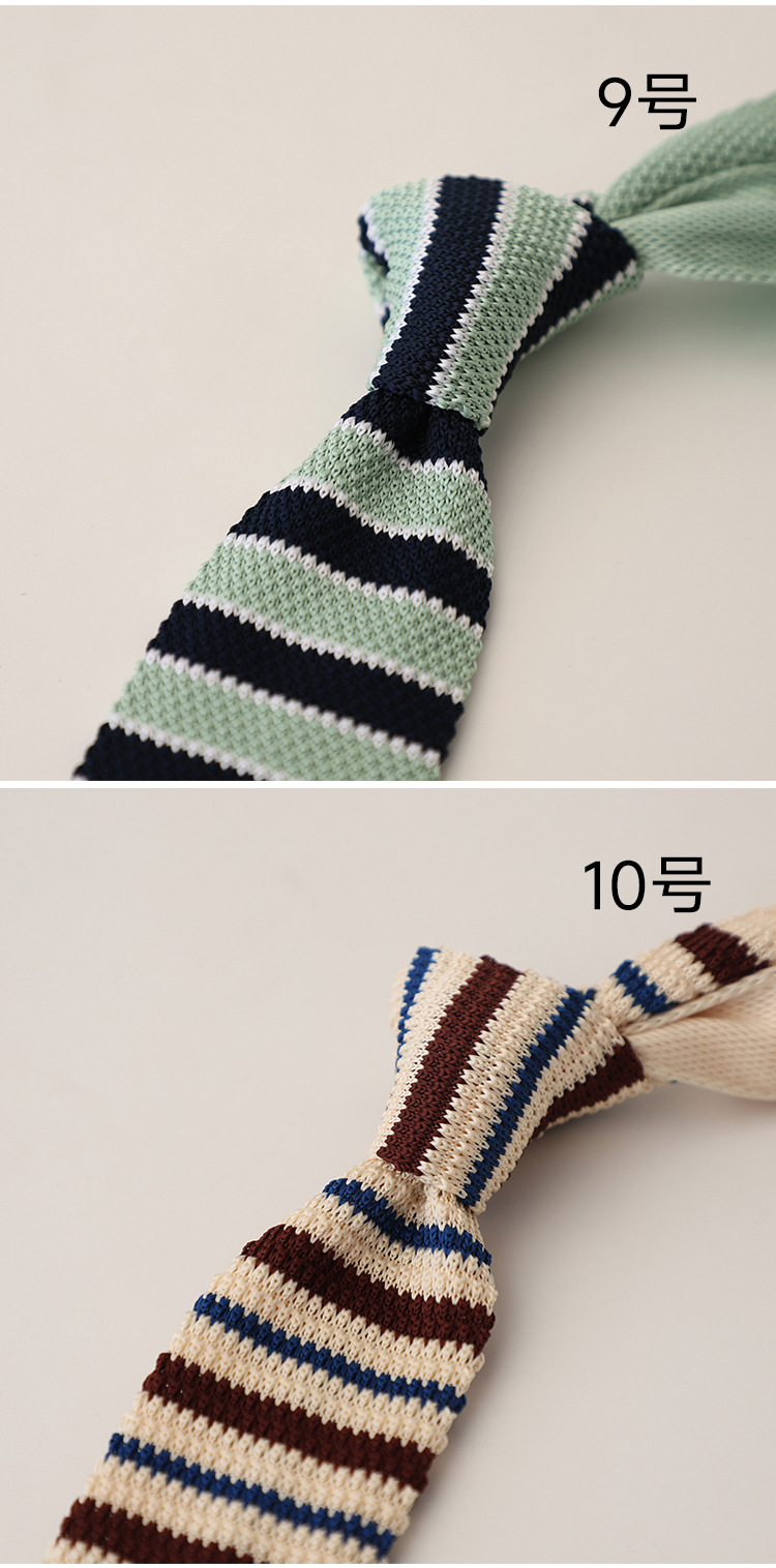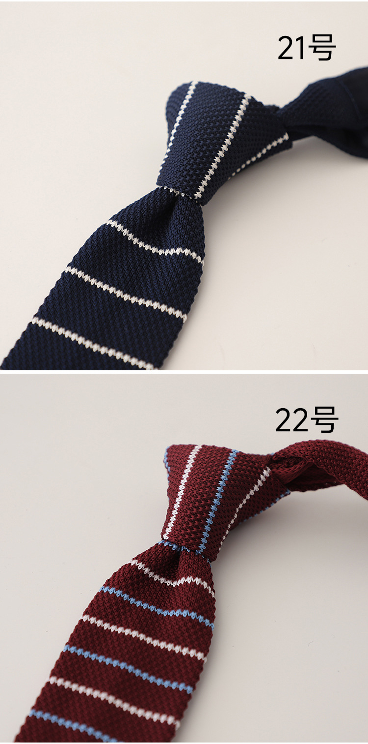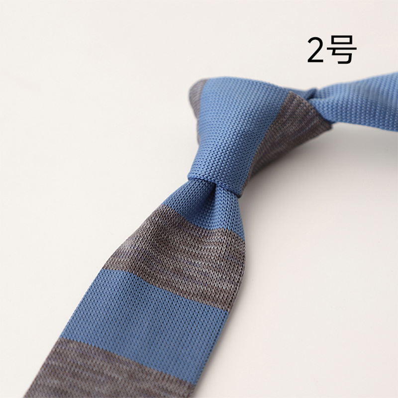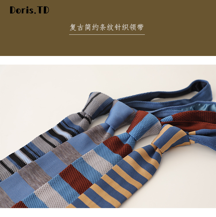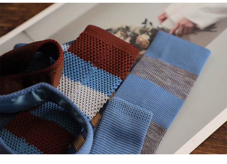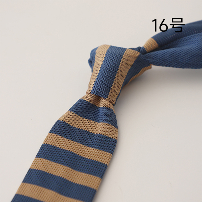 공장 현장 도매 간단한 모직 니트 손으로 짠 파란색 줄무늬 캐주얼 대학 스타일 넥타이 6CM 좁은 스타일