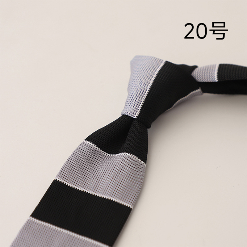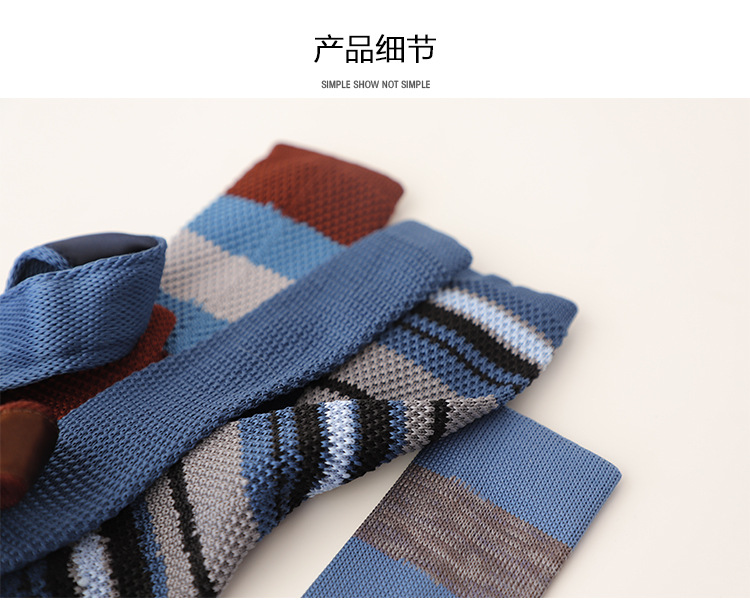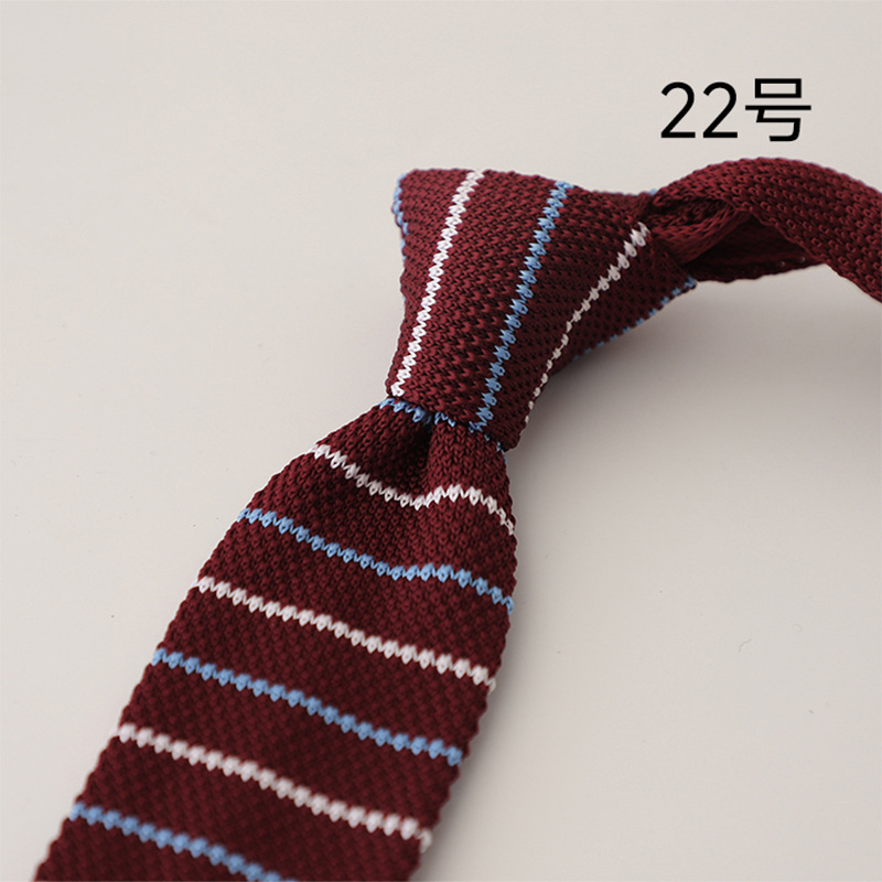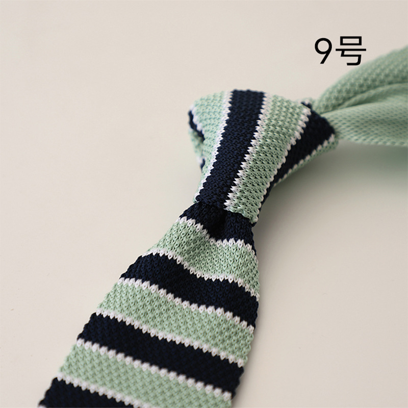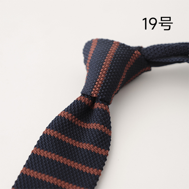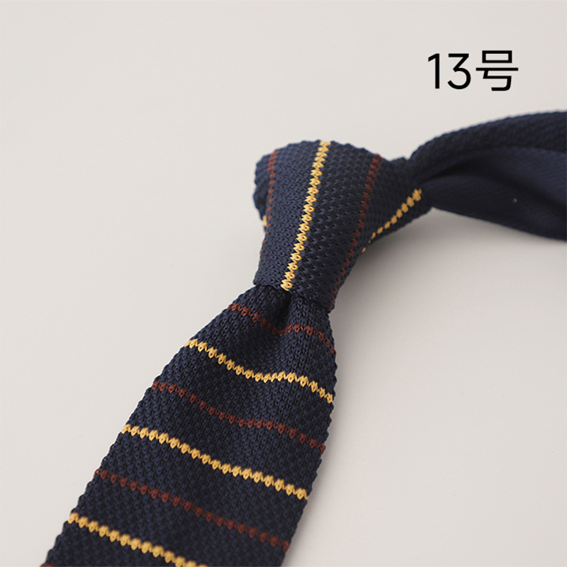 공장 현장 도매 간단한 모직 니트 손으로 짠 파란색 줄무늬 캐주얼 대학 스타일 넥타이 6CM 좁은 스타일