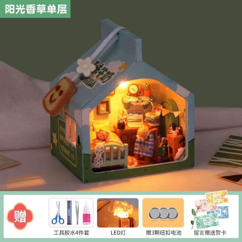 소녀와 남자 친구를위한 생일 선물을위한 미니어처 장면 오두막 건물 조립 장난감 미니 작은 집 모델