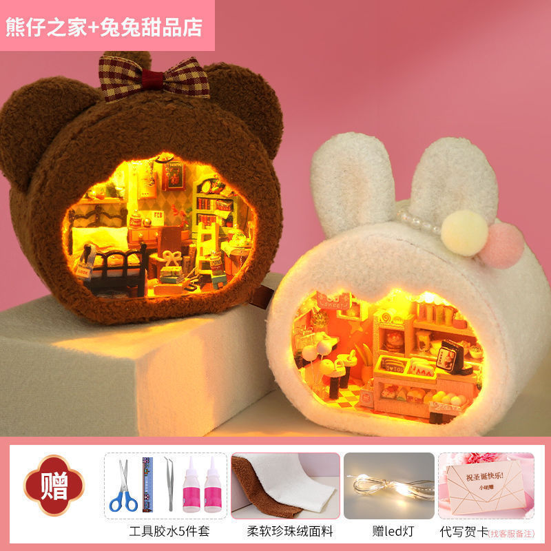 • [선물 상자 모델] 핑크 토끼 집 + 공업용 접착제 + 램프 + 선물 상자