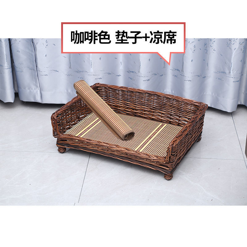 개 개집, 등나무로 짠 여름 시원한 개집, 높이에서 떨어져 있는 개 개집, 개 침대, 개집, 사계절 모두 사용 가능, 탈부착 및 세척 가능한 대형, 중형 및 소형 개 개집, 고양이 개집스토어 가기