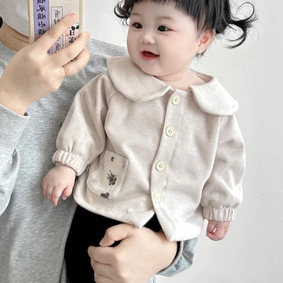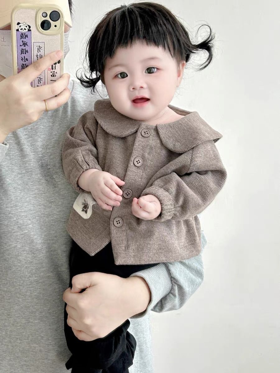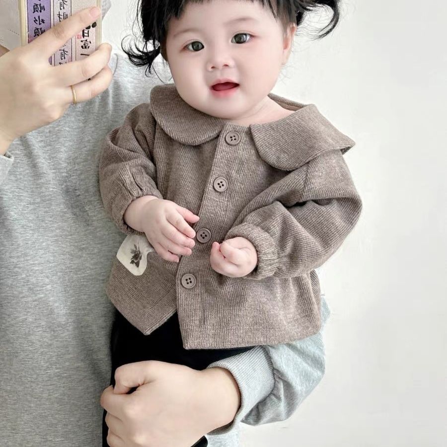 가을 신작 여아 인형 칼라 가디건 코트, 작은 월령 긴팔 외출 상의, 바지, 다용도 캐주얼 슈트스토어 가기