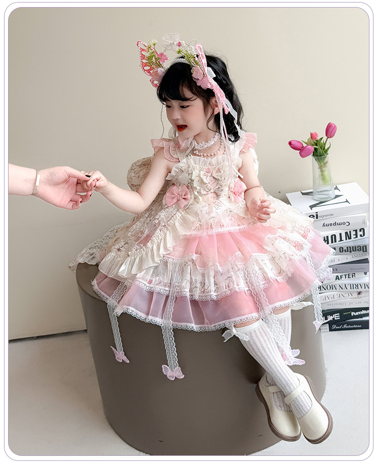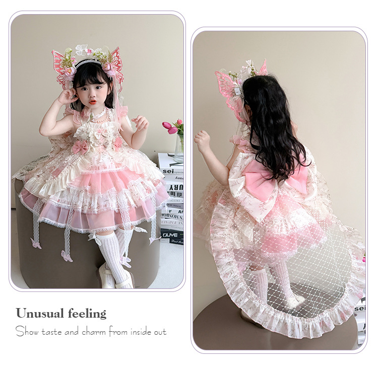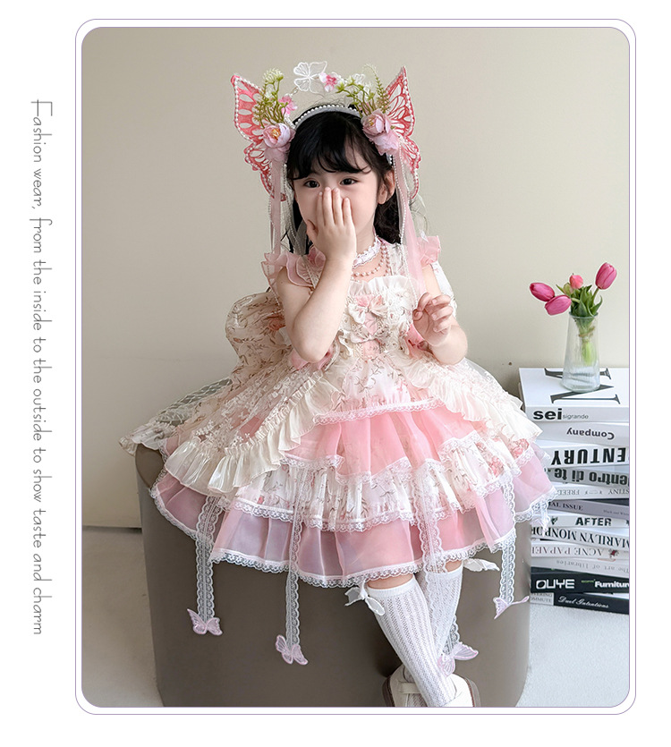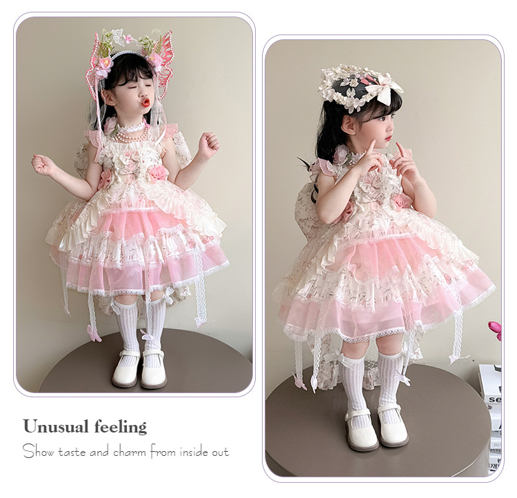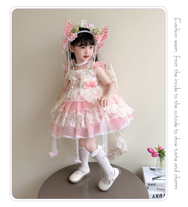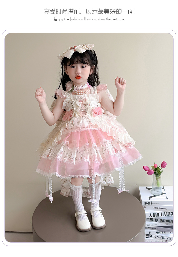 여자 드레스 여름 2025 새로운 어린이 로리타 모네 가든 공주 드레스 생일 드레스 투투 스커트