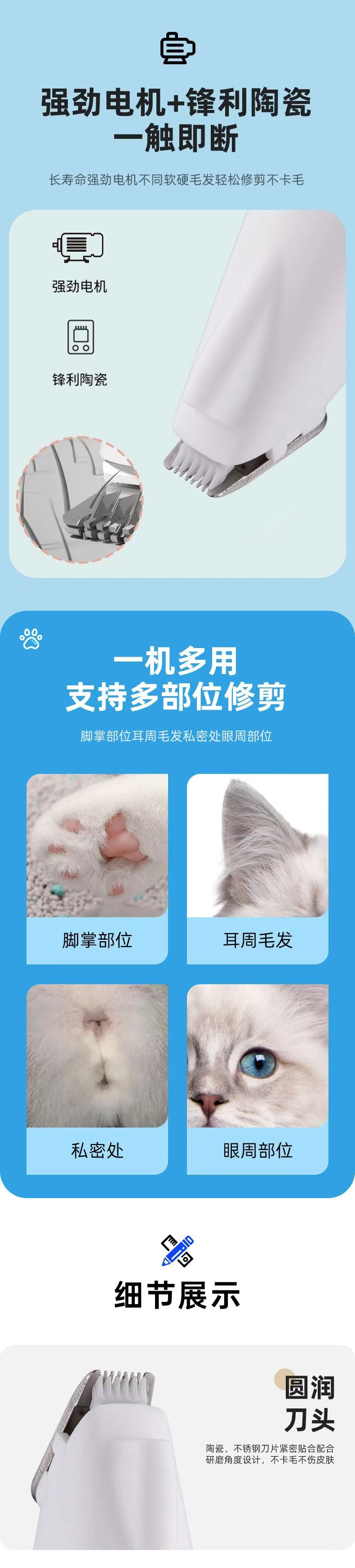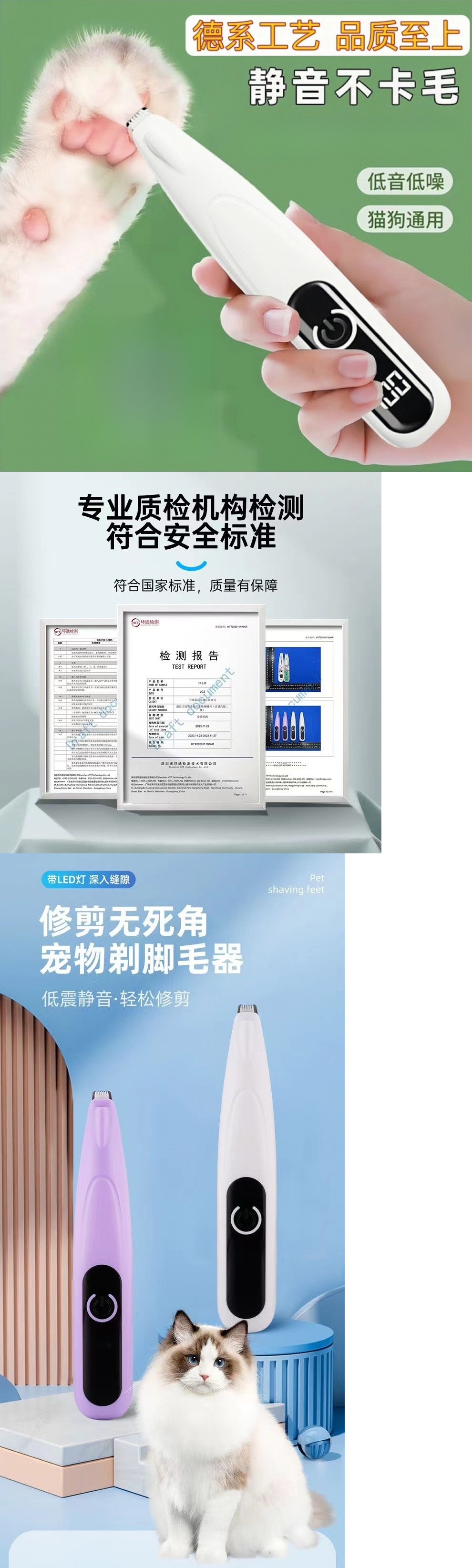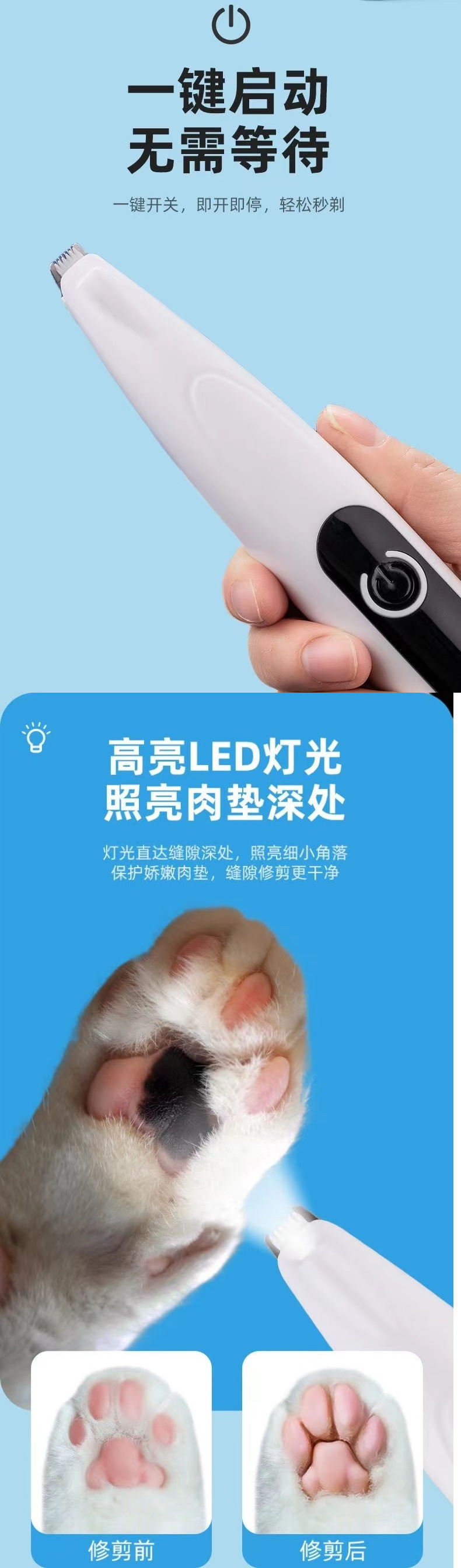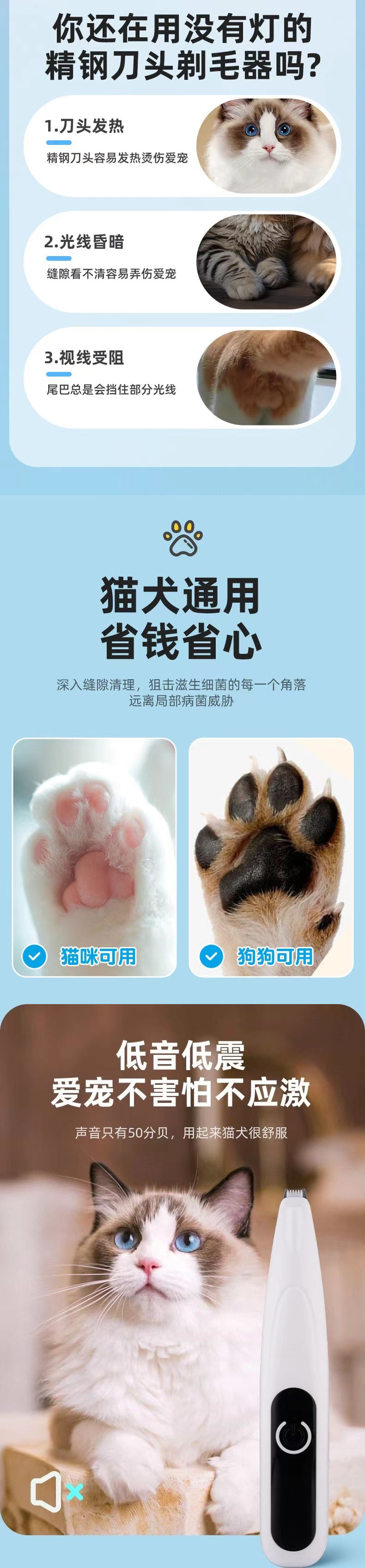 고양이와 개를 위한 특수 발 면도기, 충전식 조명, 방수 헤어 트리머, 애완동물용 전기 이발기, 무소음스토어 가기