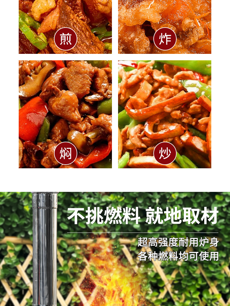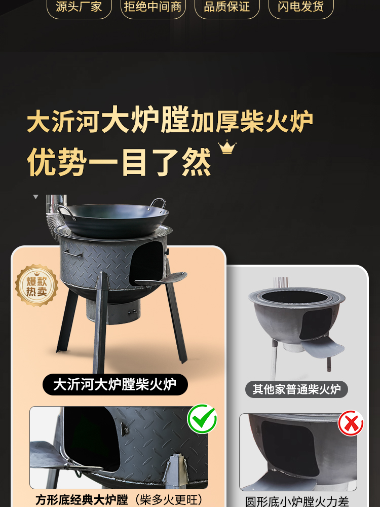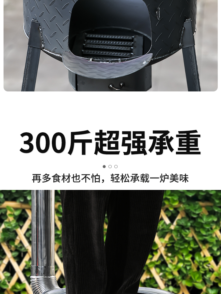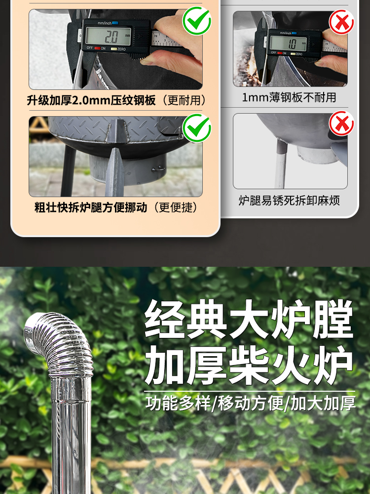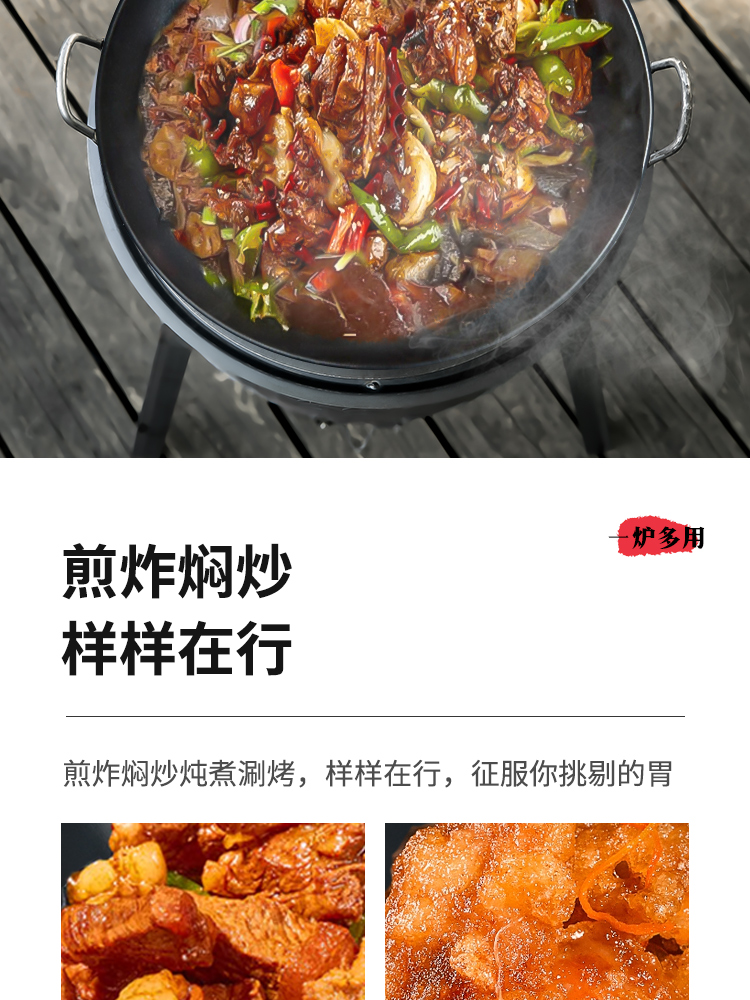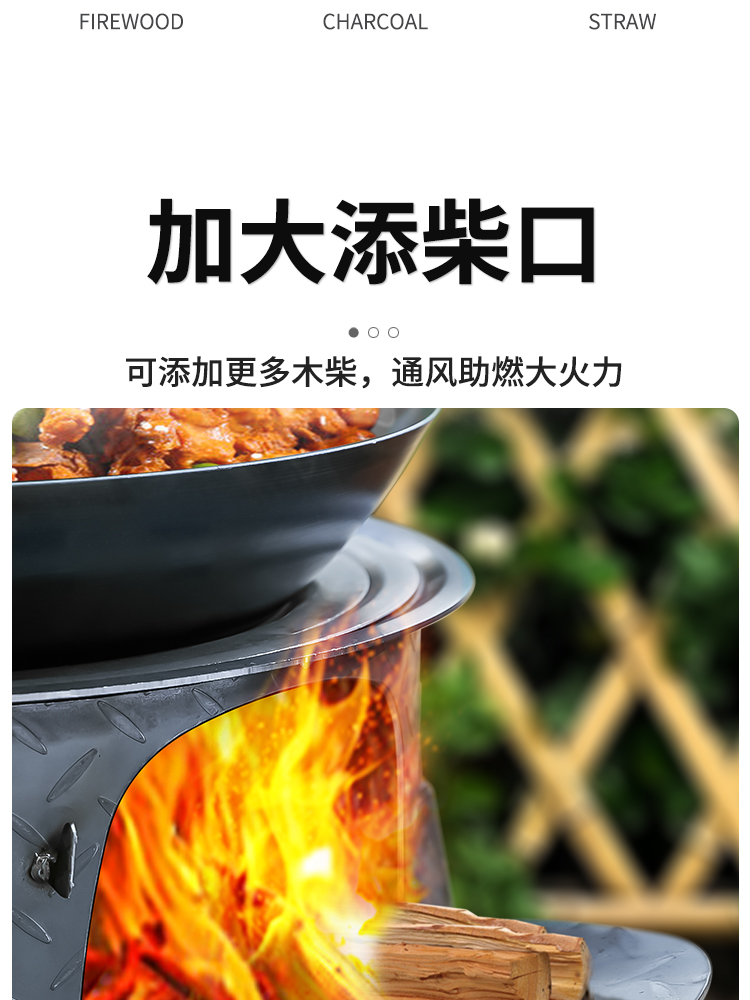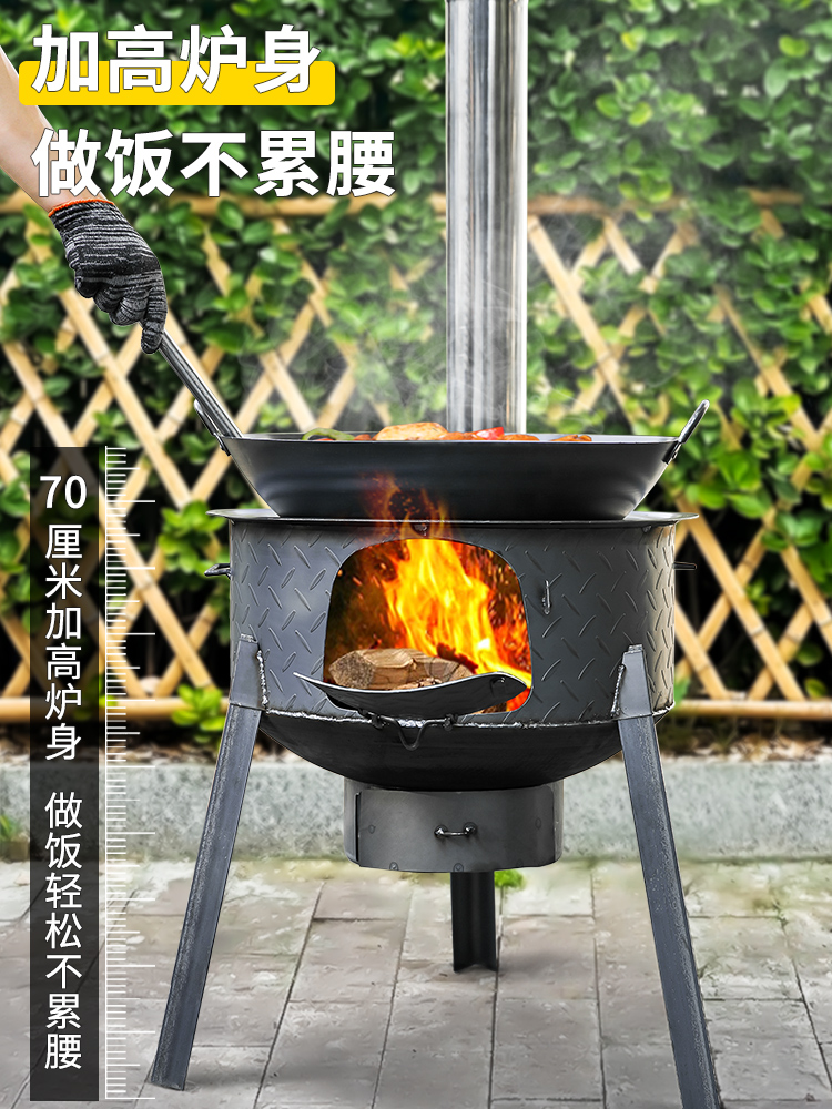• [클래식 대형 화로] [두꺼운 2.2 패턴 강철] 48CM + [냄비 포함 풀 세트] [스테인리스 굴뚝]