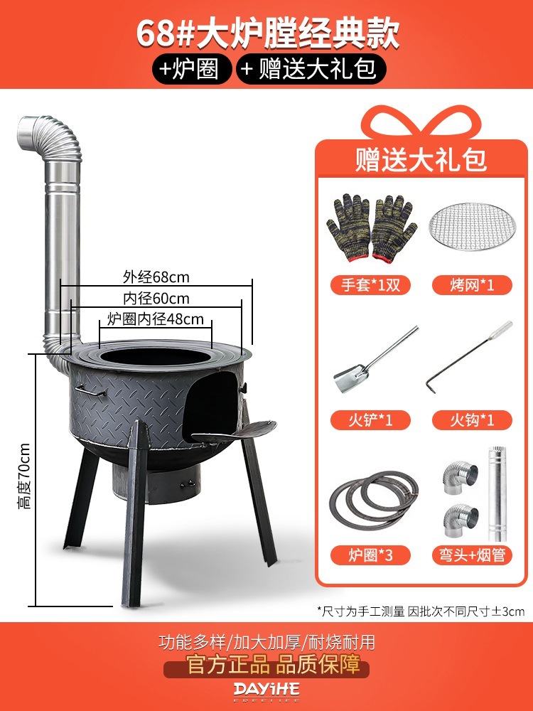 • [클래식 대형 화로] [두꺼운 2.2 패턴 강철] 68CM + [냄비 포함 풀 세트] [스테인리스 굴뚝]
