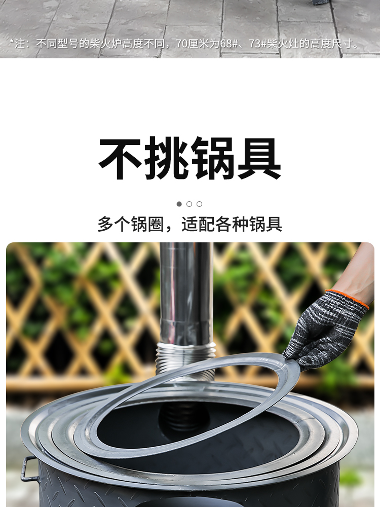 • [클래식 대형 화로] [두꺼운 2.2 패턴 강철] 73CM+ [냄비 포함 풀 세트] [스테인리스 굴뚝]