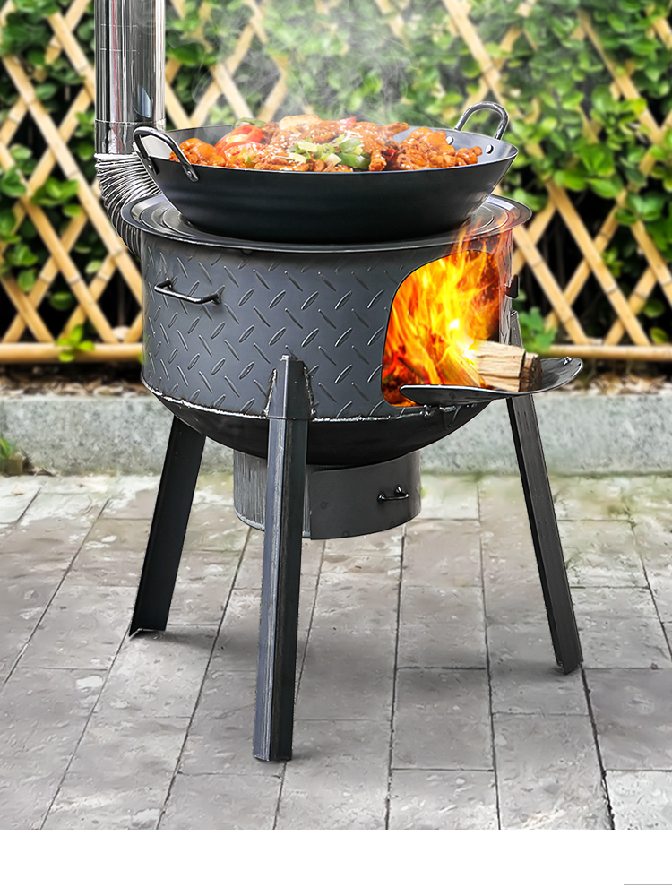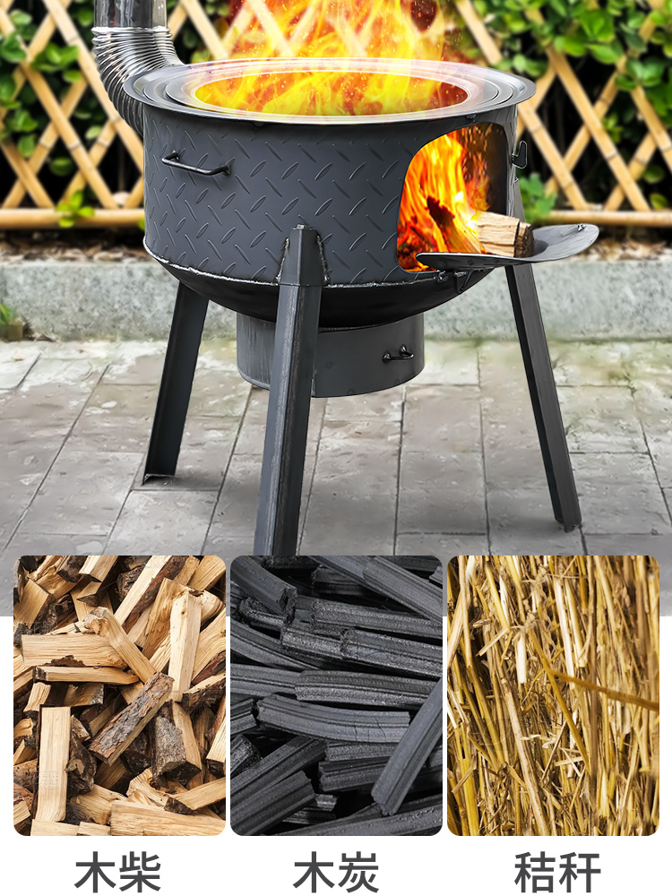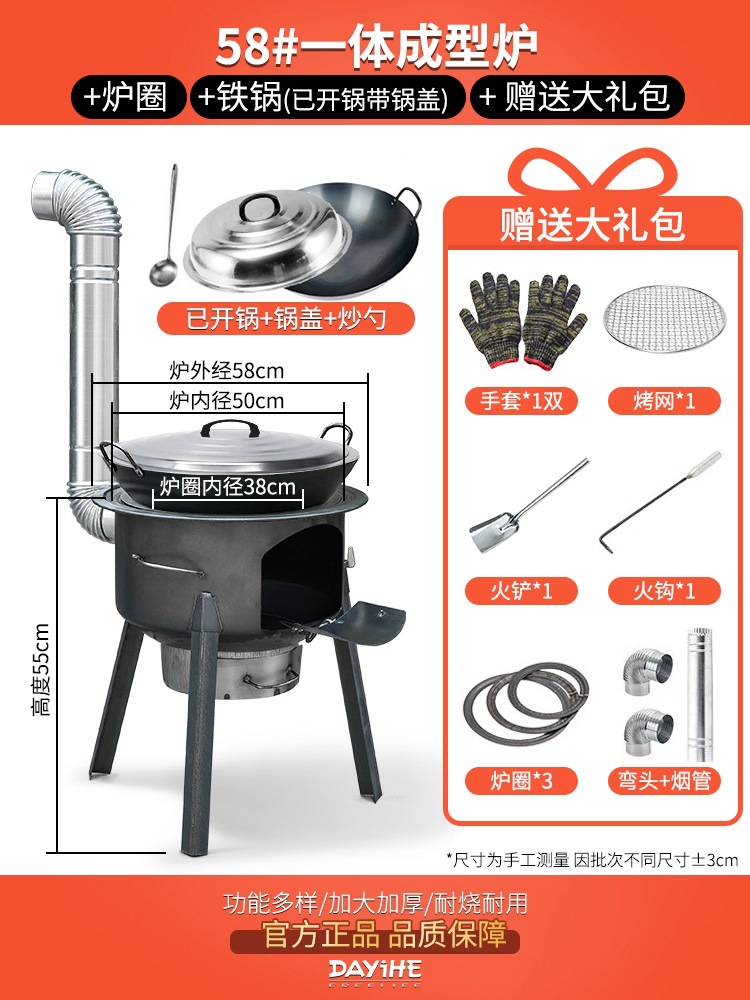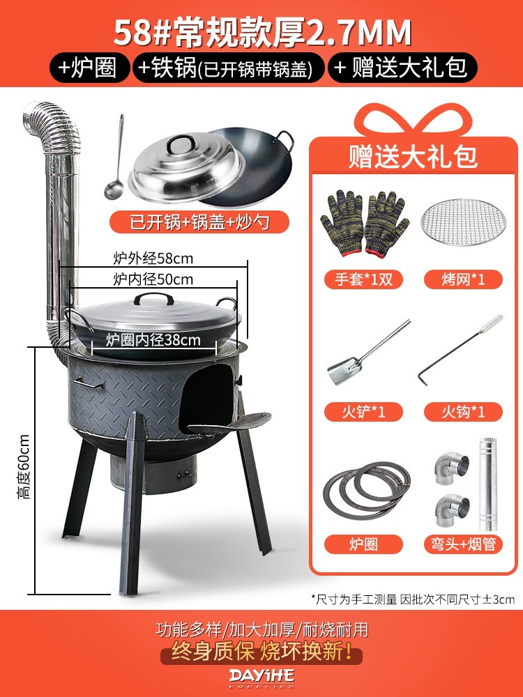 • [클래식 대형 화로] [두꺼운 2.2 패턴 강철] 58CM + [냄비 포함 풀 세트] [스테인리스 굴뚝]