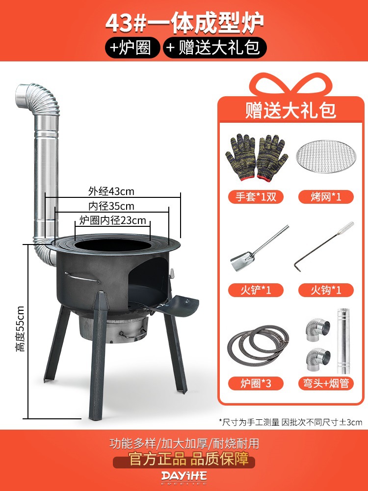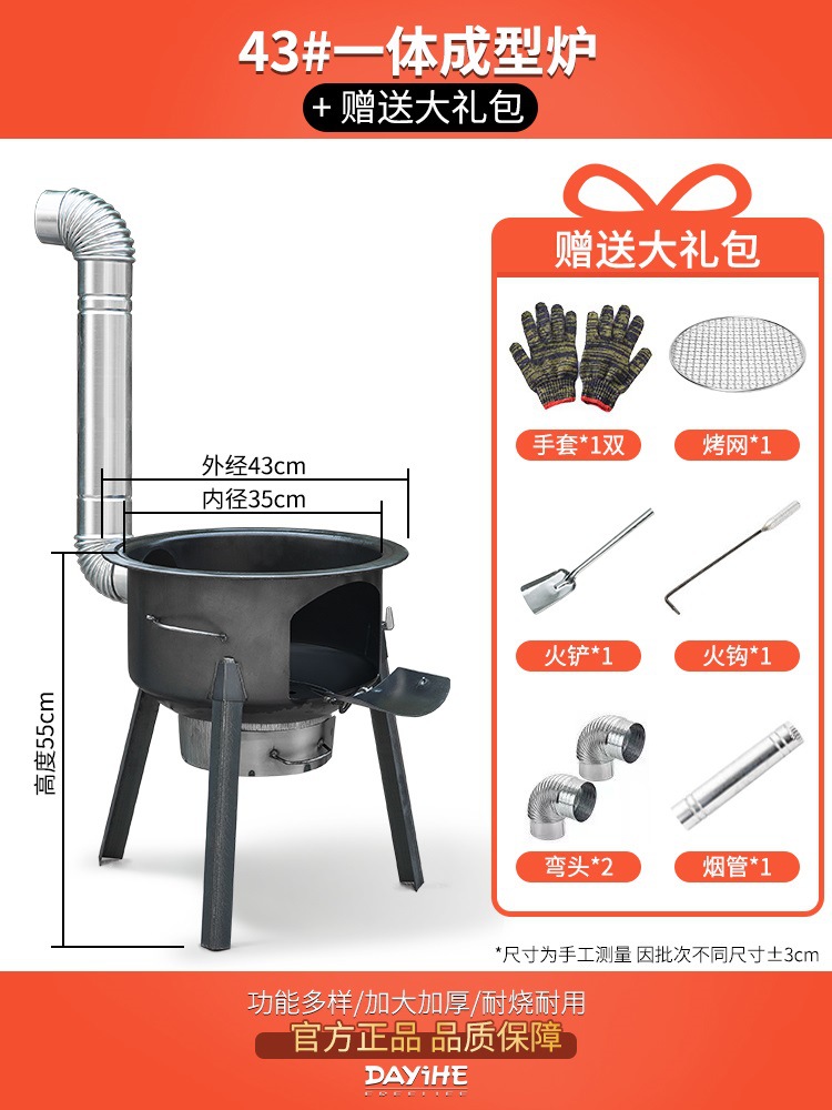 • [클래식 대형 화로] [두꺼운 2.2 패턴 강철] 43CM + [냄비 포함 풀 세트] [스테인리스 굴뚝]