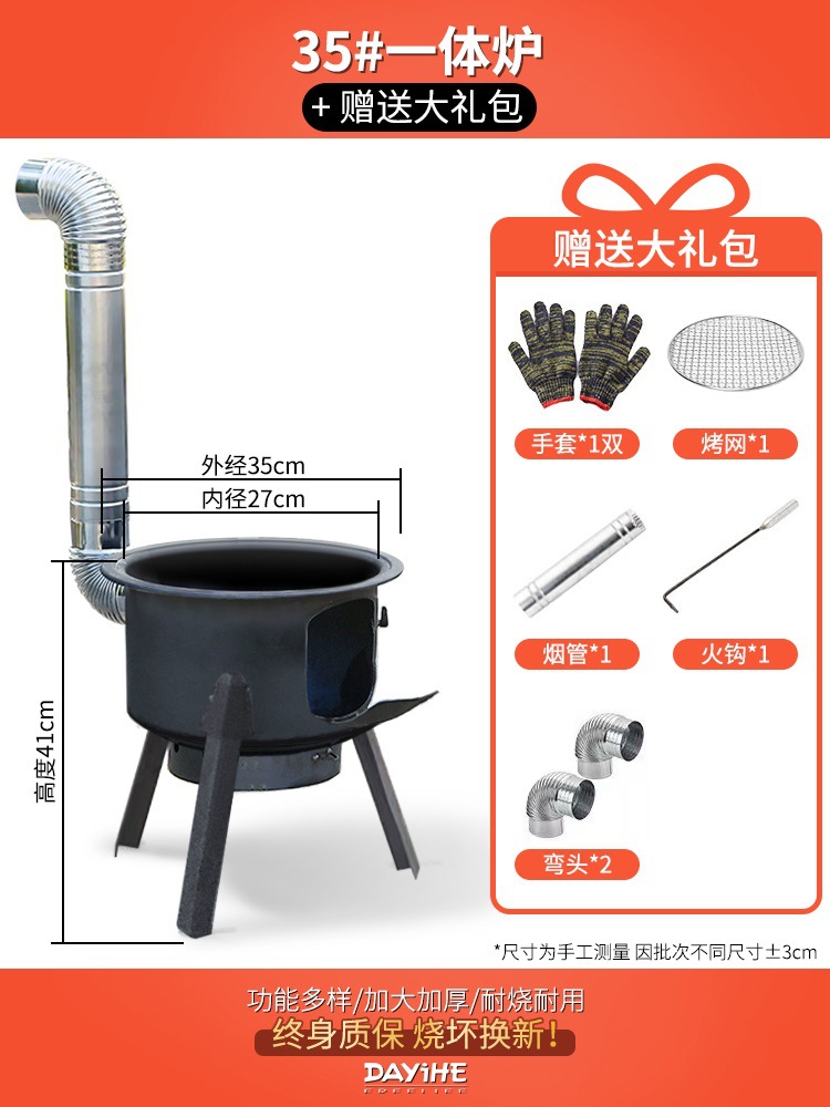 • [클래식 대형 화로] [두꺼운 2.2 패턴 강철] 52CM + [냄비 포함 풀 세트] [스테인리스 굴뚝]