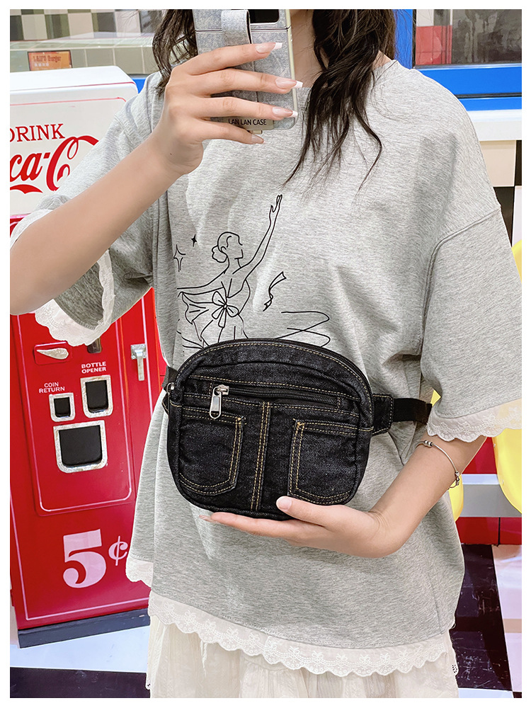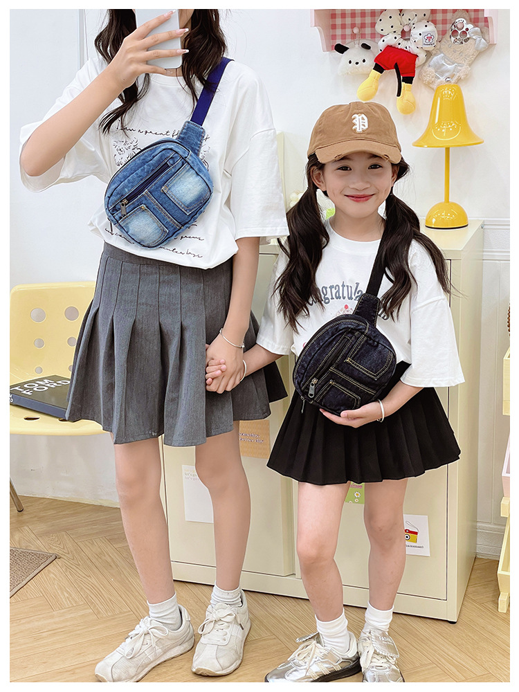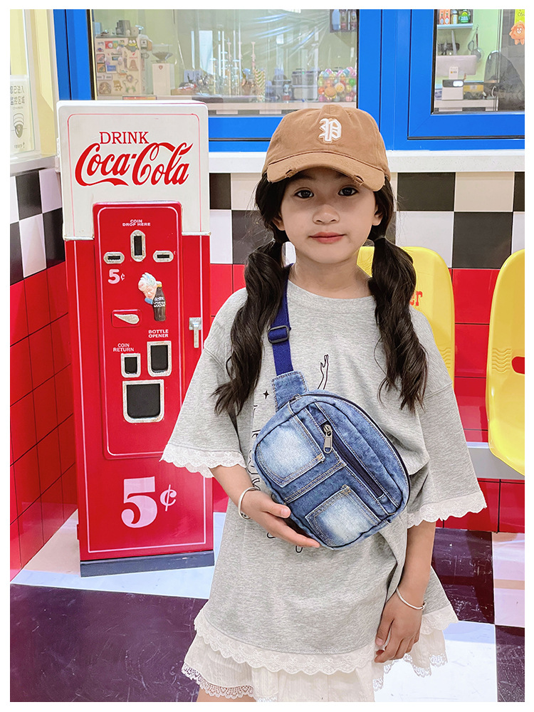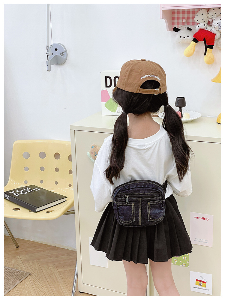 아동용 가방, 다재다능하고 캐주얼하며 심플한 데님 미니 허리 가방, 패셔너블하고 스타일리시한 여아용 여행용 배낭