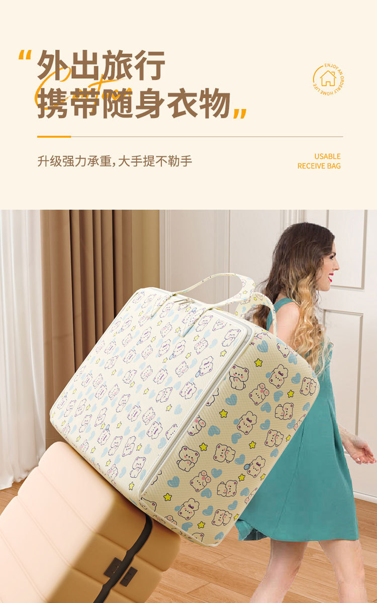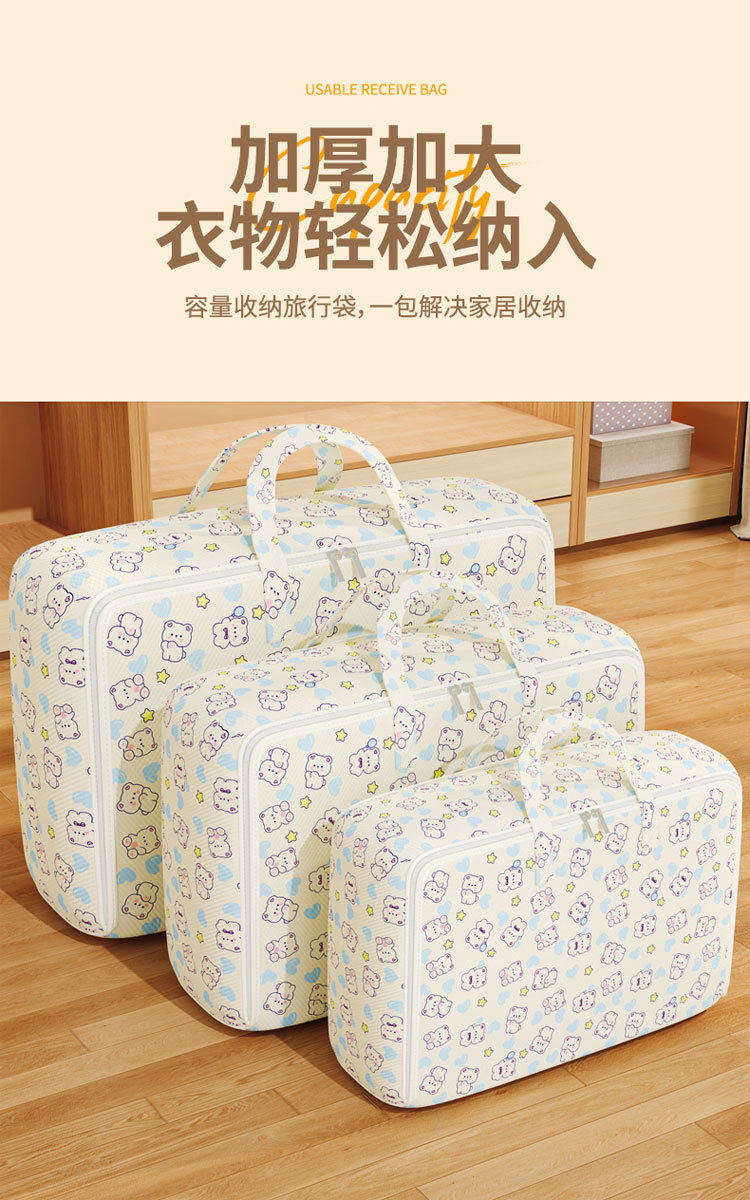 국경 간 원래 만화 곰 저장 가방 부직포 여행 이동 포장 가방 의류 이불 정리 저장 가방