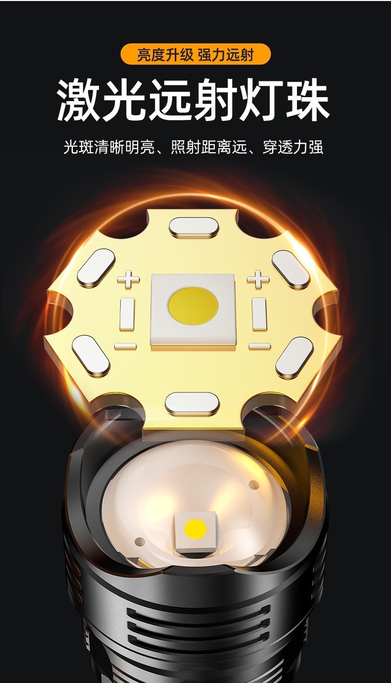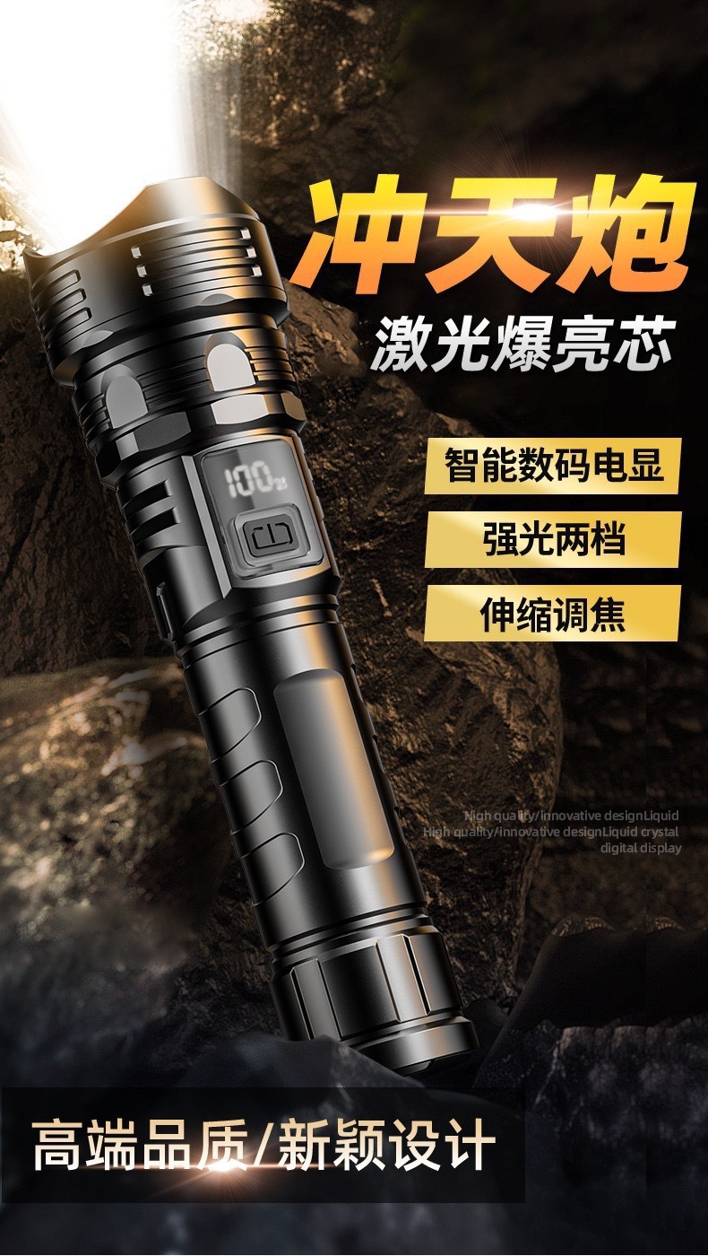 새로운 지능형 디지털 디스플레이 흰색 레이저 손전등 강한 빛 다기능 텔레스코픽 줌 휴대용 야외 낚시 램프