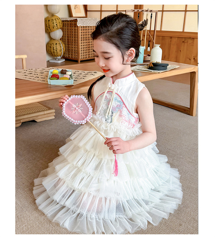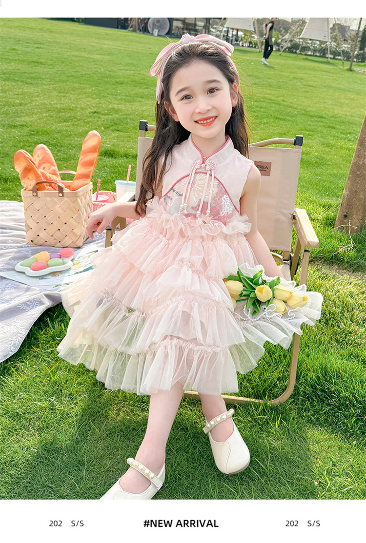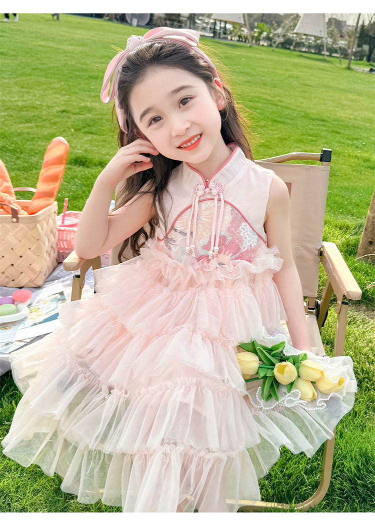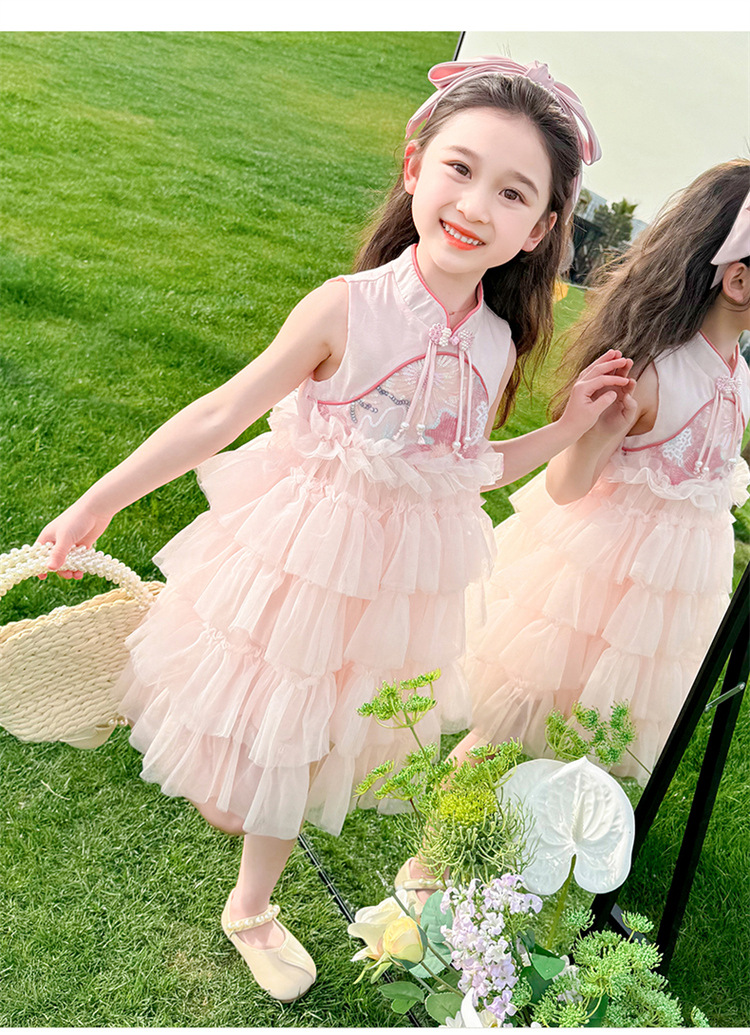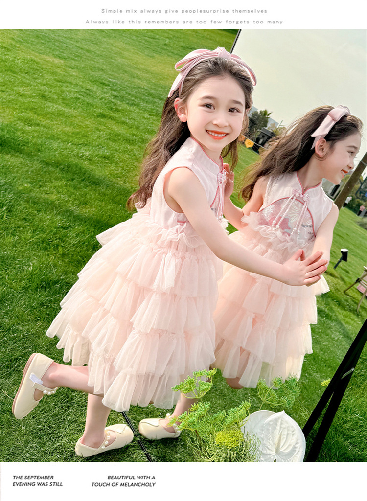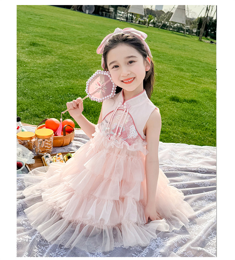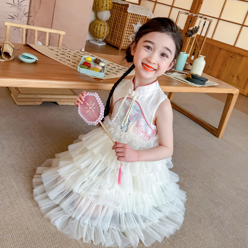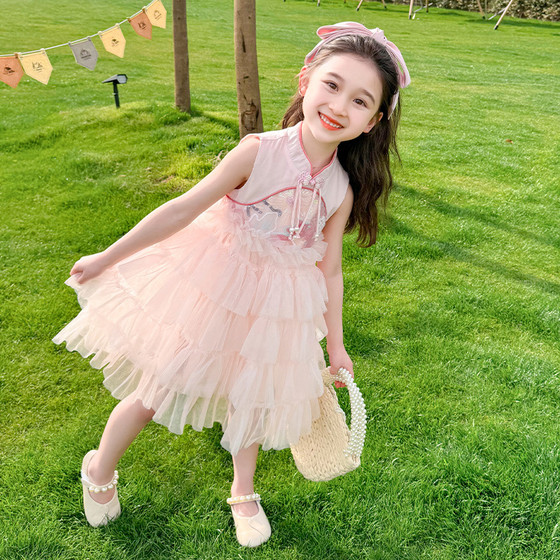 여자 드레스 여름 2025 새로운 아기 공연 의상 어린이 여름 중국 스타일 스커트 버튼 공주 드레스