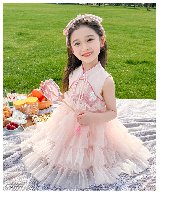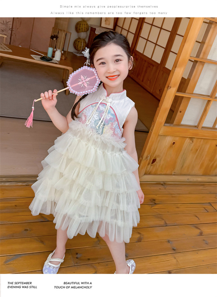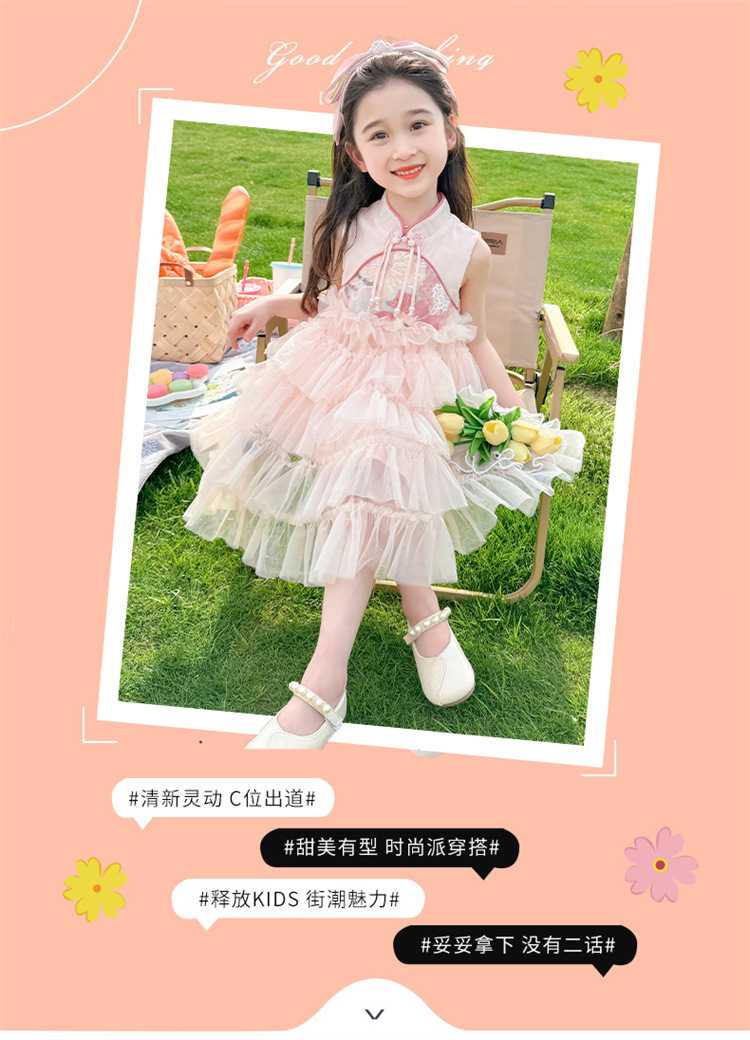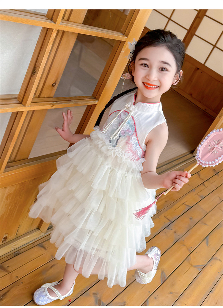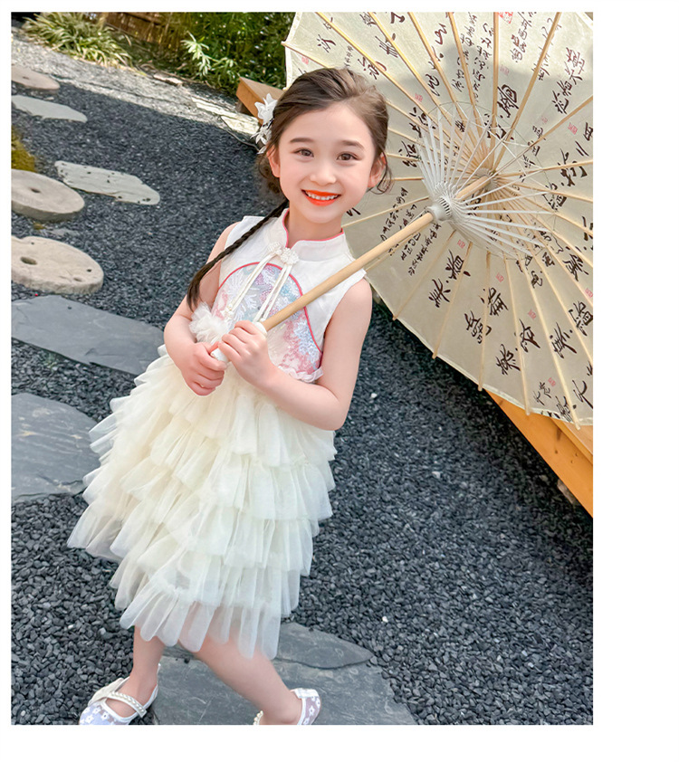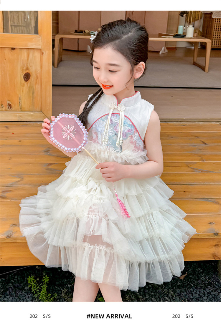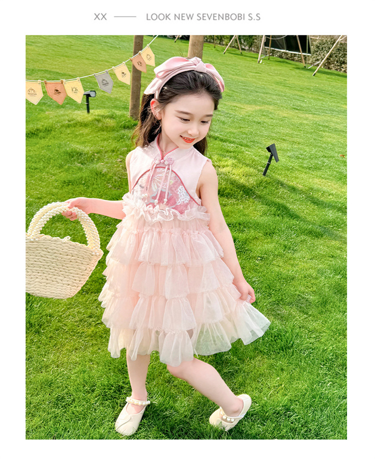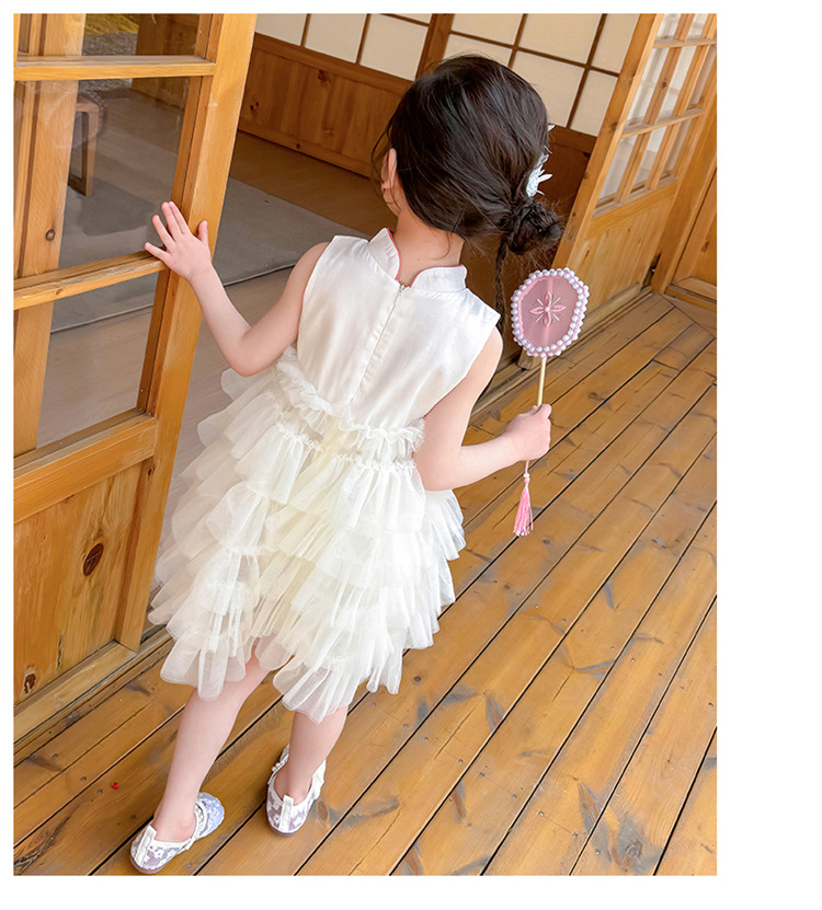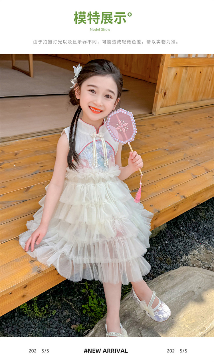 여자 드레스 여름 2025 새로운 아기 공연 의상 어린이 여름 중국 스타일 스커트 버튼 공주 드레스