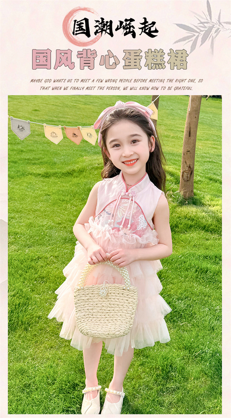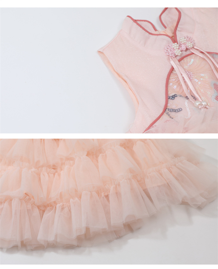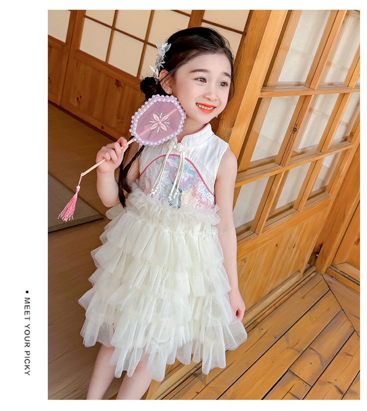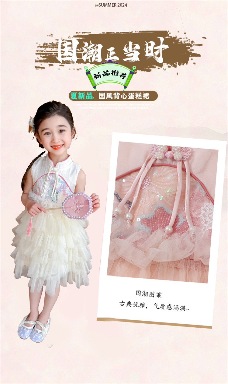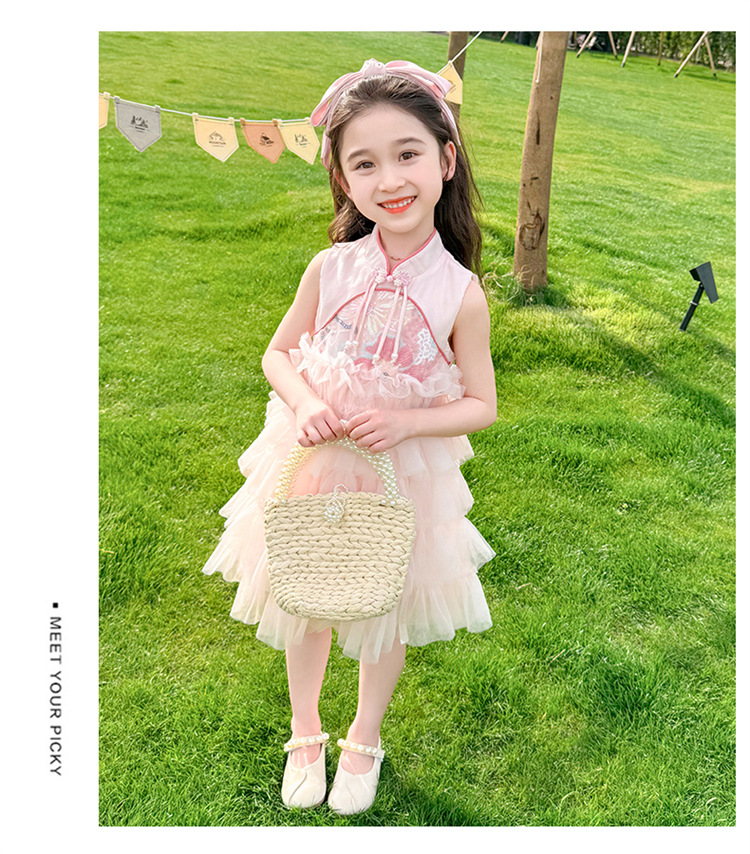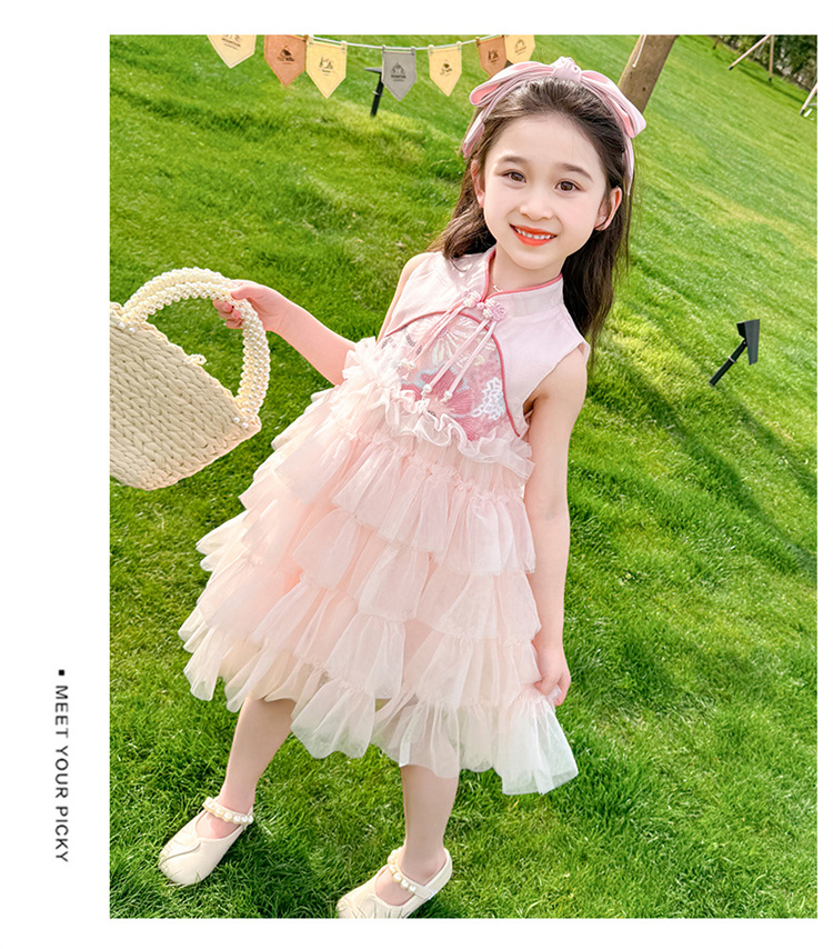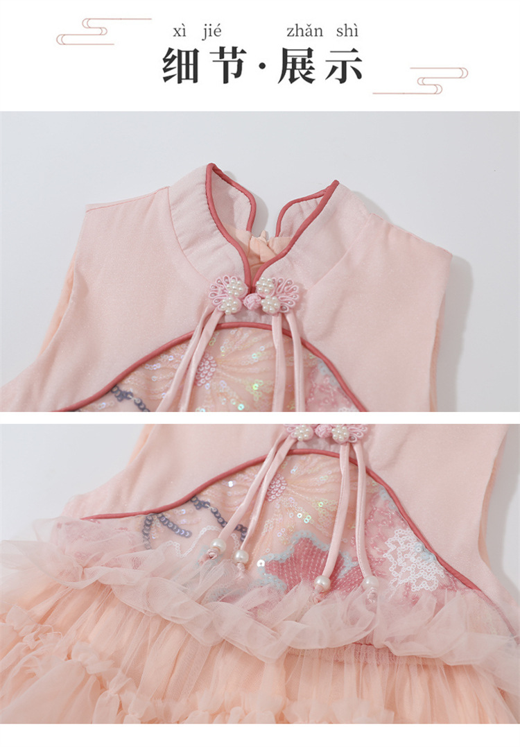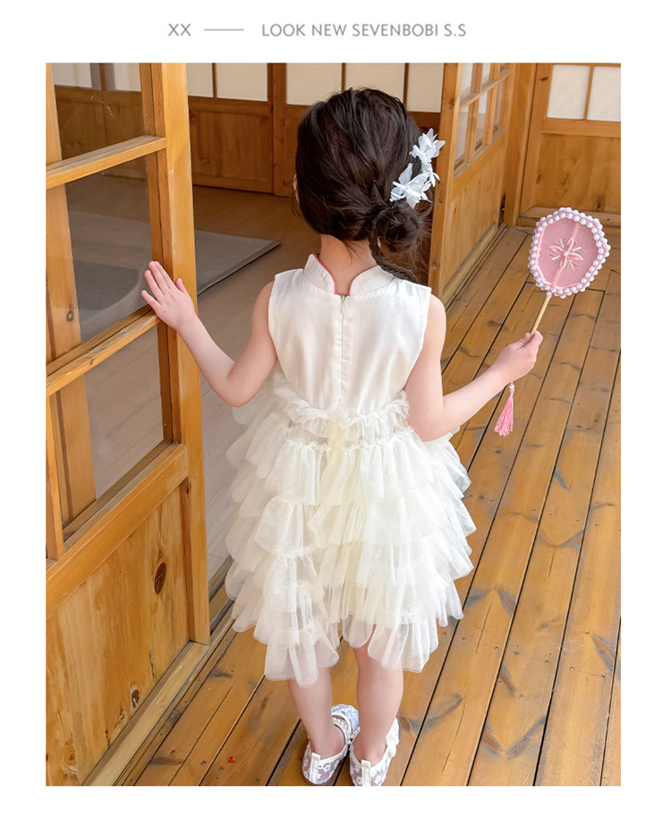 여자 드레스 여름 2025 새로운 아기 공연 의상 어린이 여름 중국 스타일 스커트 버튼 공주 드레스