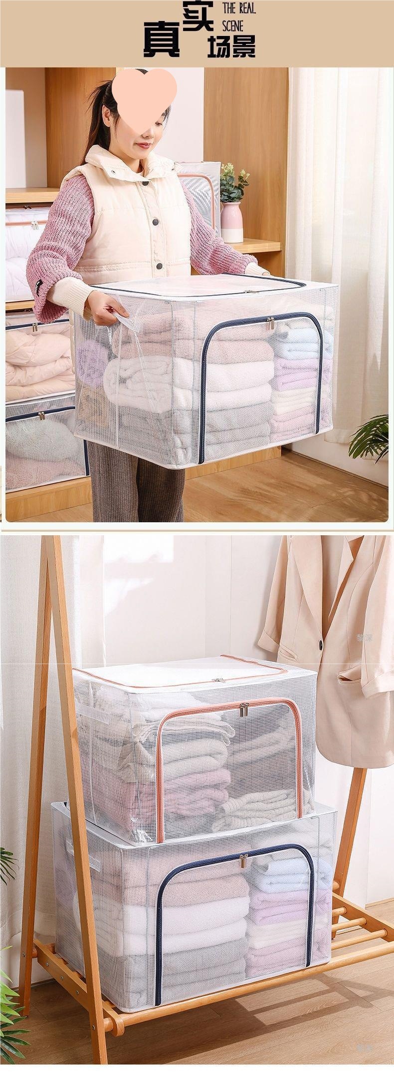 두꺼운 강철 프레임이 있는 투명한 옷 보관 상자 접이식 방습 옷장 정리 이불 보관 상자 설치가 필요 없는 보관 상자