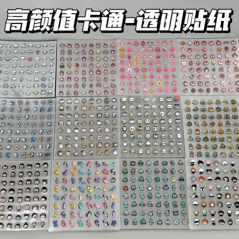 DIY 고가치 장식 스티커 학생 펜 홀더 투명 평면 스티커 도매를위한 슈퍼 귀여운 만화 스티커 컬렉션