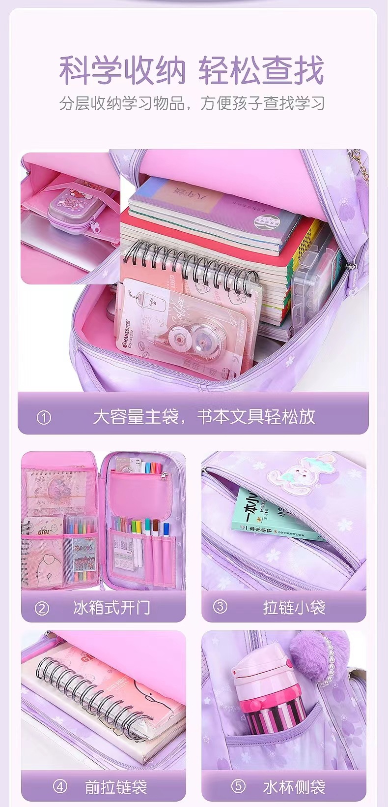 새로운 초등학교 가방 소녀 배낭 소녀의 멋진 1-3-6 학년 방수 및 부담 감소 배낭스토어 가기