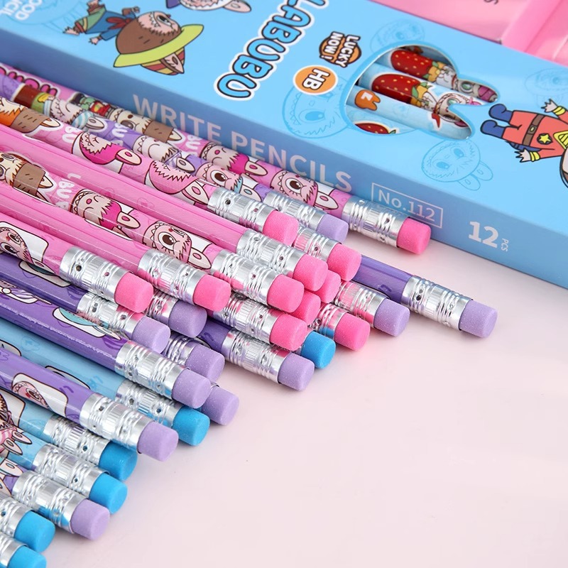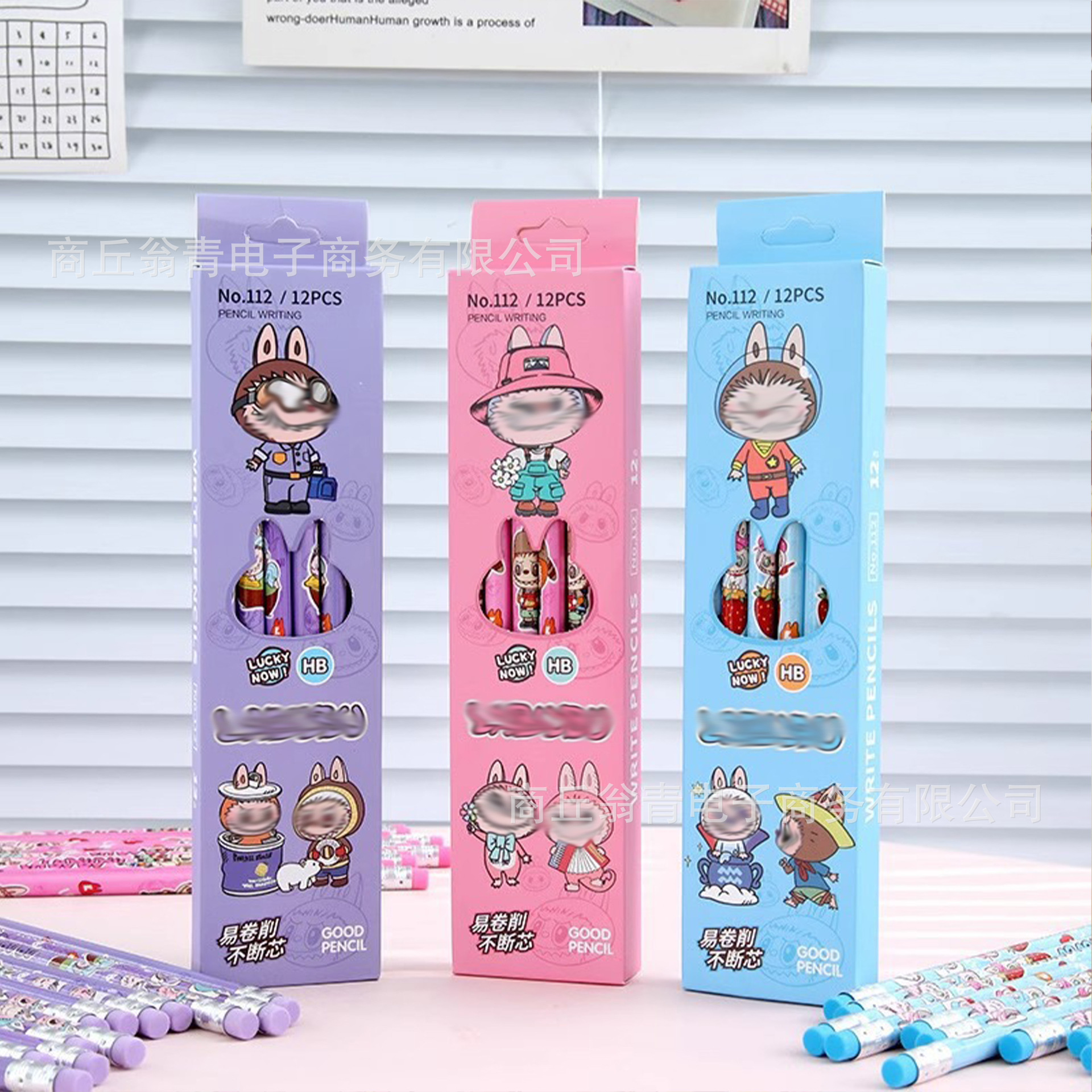 인터넷 연예인 인기 라부부 HB 연필 만화 고가치 LABUBU 12팩 학생 연습용 펜 대외 무역 국경 간스토어 가기
