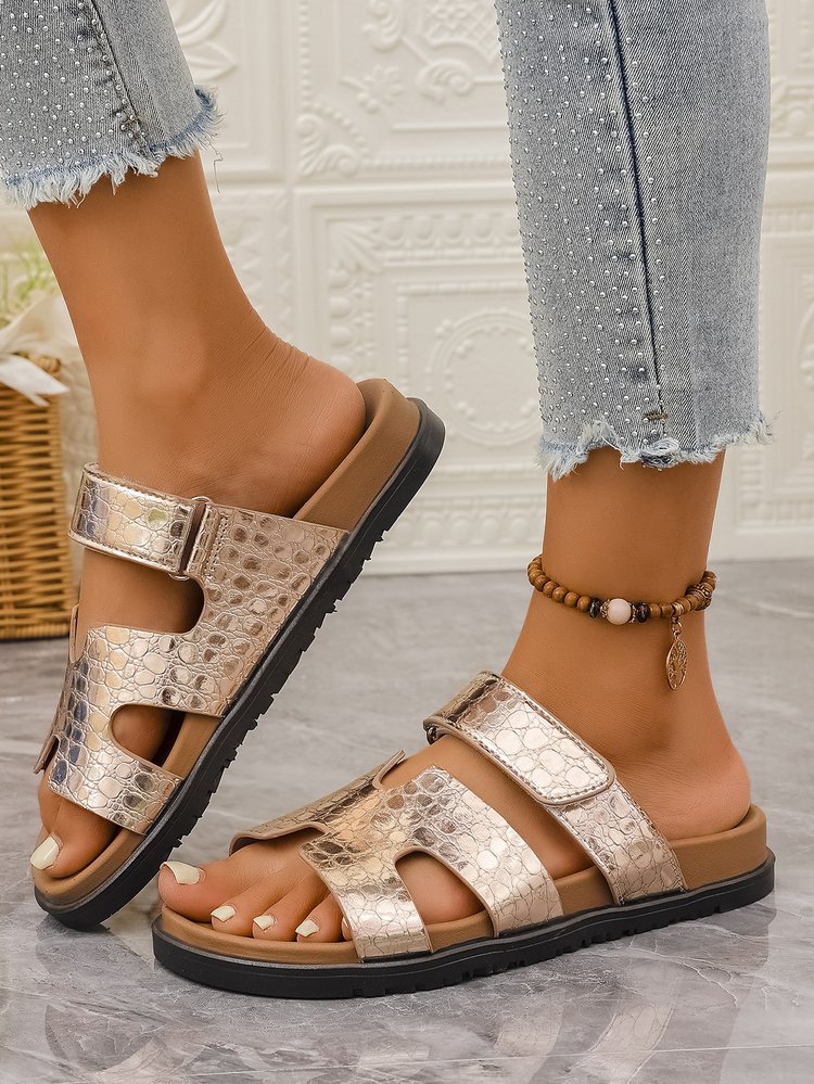 스팟 크로스보더 2025 여름 신작 대외 무역 슬리퍼 여성용 두꺼운 밑창 벨크로 유럽과 미국의 단색 슬리퍼