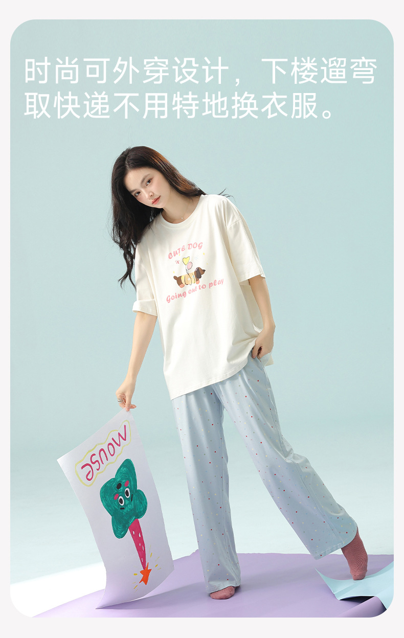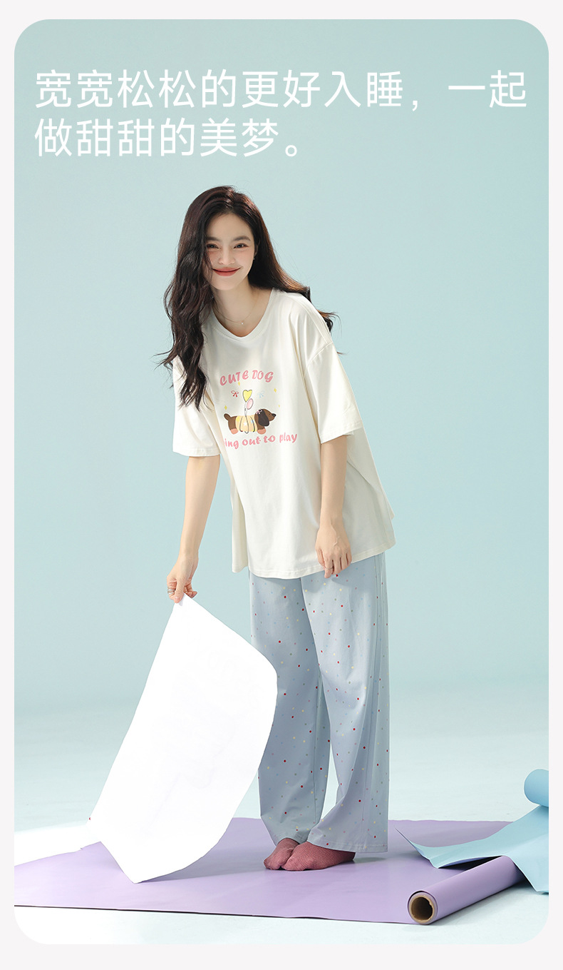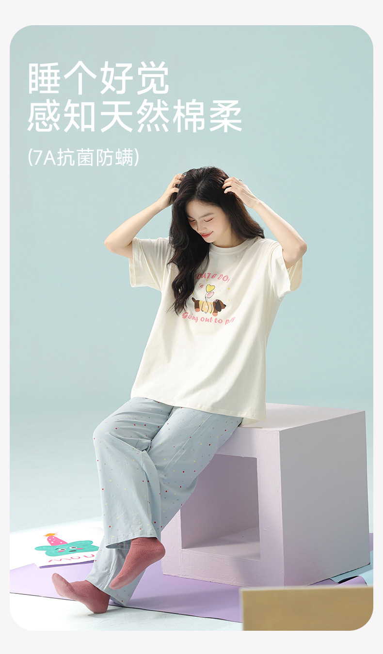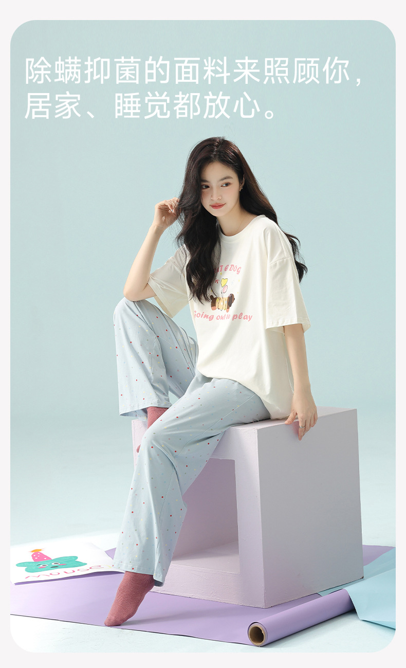 [항균 신장면] 2025 봄 여름 여성용 반팔 바지 잠옷 여름 순면 한국식 귀엽고 가벼운 가정복스토어 가기