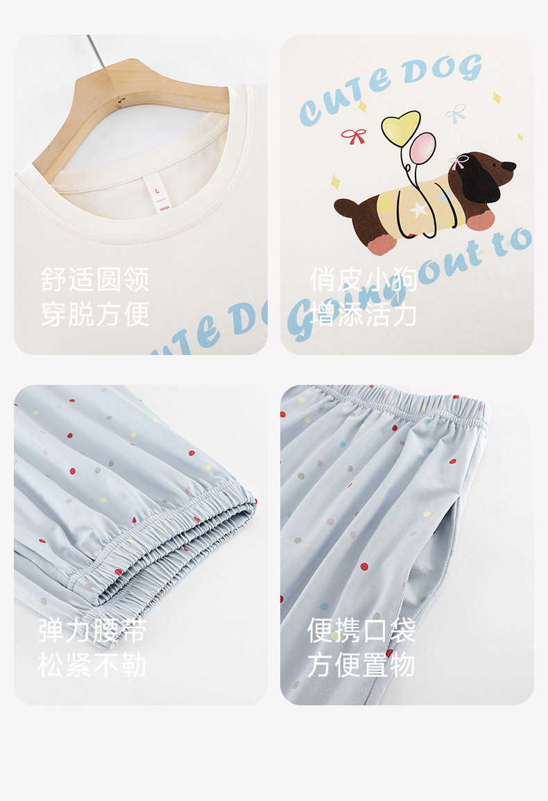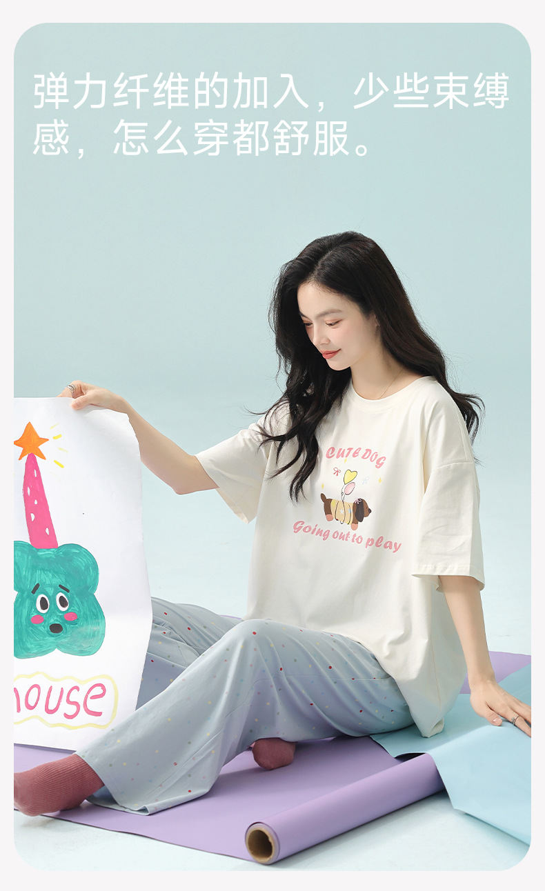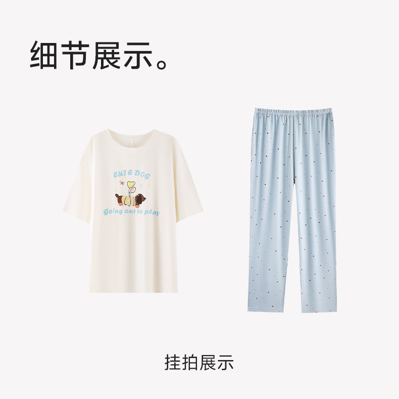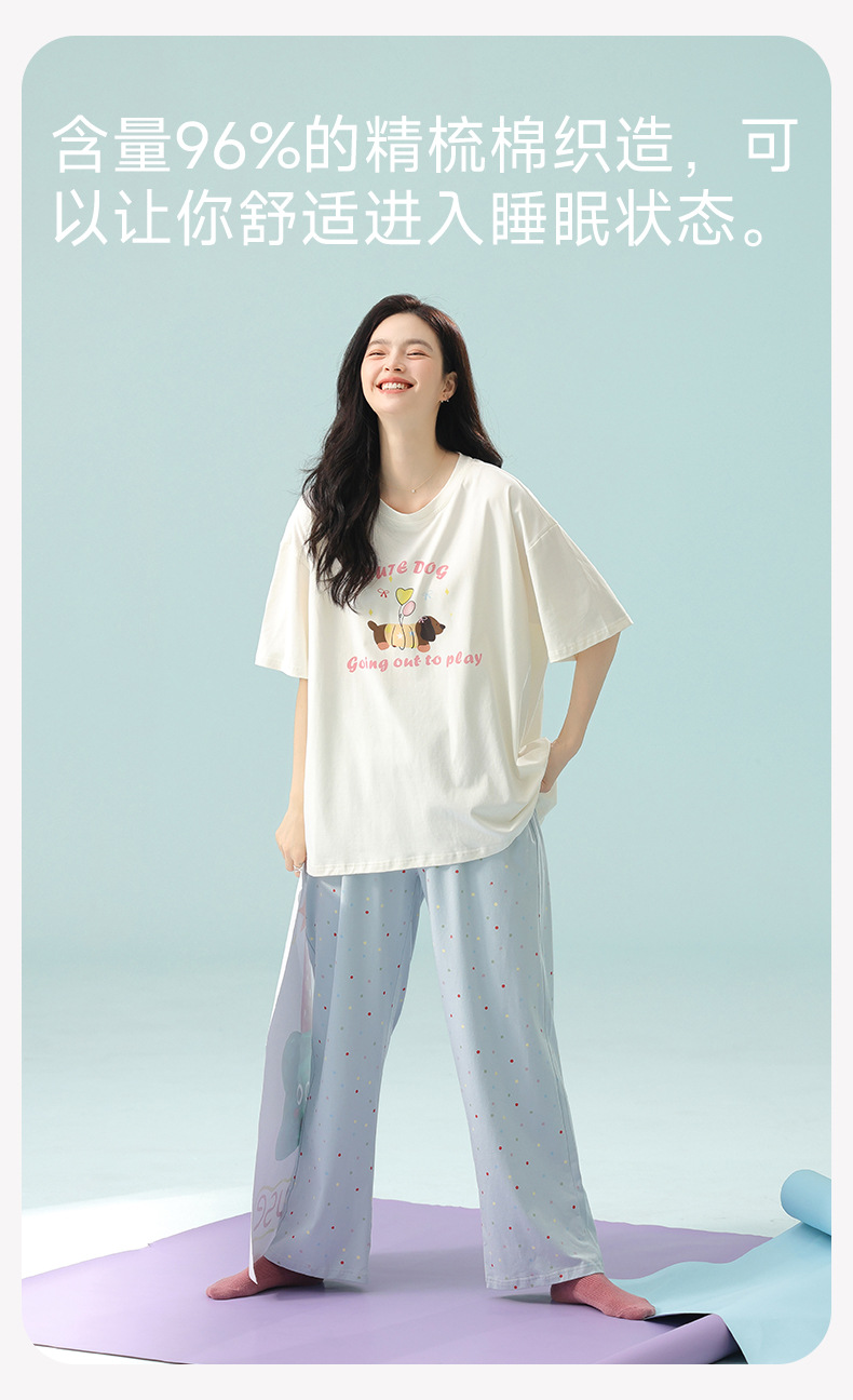 [항균 신장면] 2025 봄 여름 여성용 반팔 바지 잠옷 여름 순면 한국식 귀엽고 가벼운 가정복스토어 가기