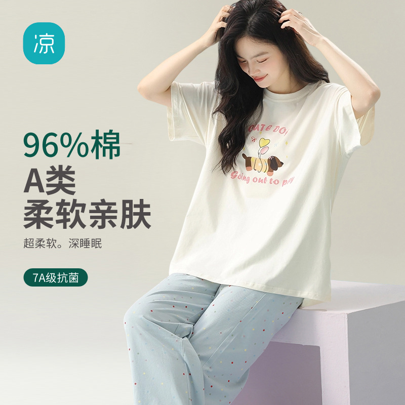 [항균 신장면] 2025 봄 여름 여성용 반팔 바지 잠옷 여름 순면 한국식 귀엽고 가벼운 가정복