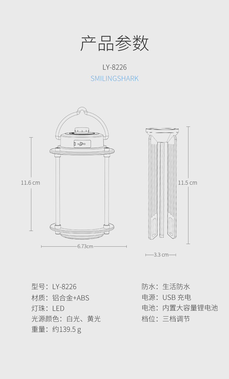 • LY-8258A 다기능 분위기 캠핑 라이트-싱글 라이트 [내장 배터리 2000mAh]