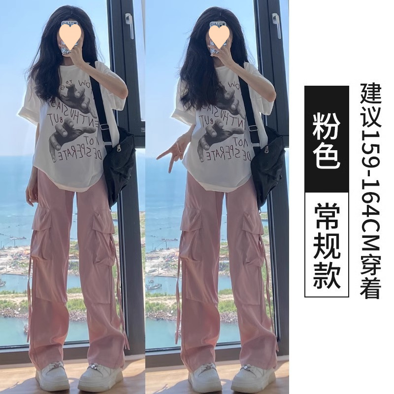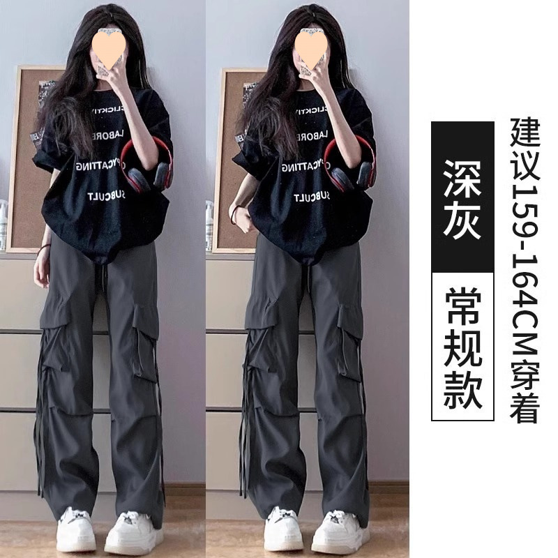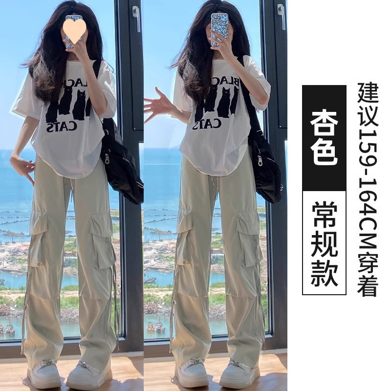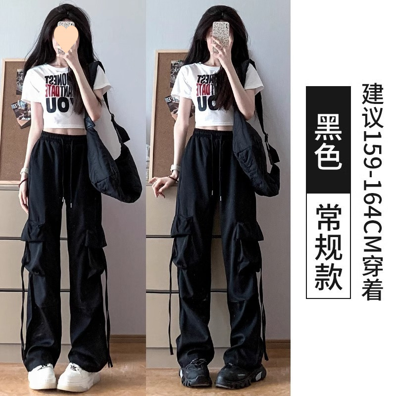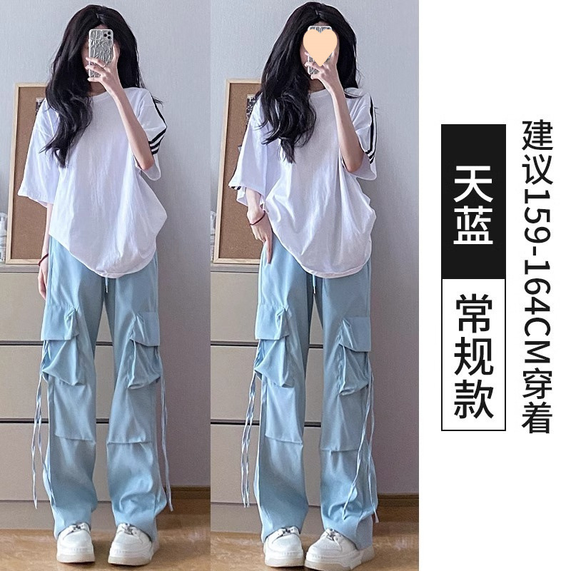 여성용 아메리칸 파라슈트 카고 팬츠 2025 봄, 가을 작은 하이 웨이스트 스트레이트 캐주얼 블루 스포츠 바지스토어 가기