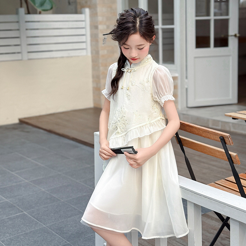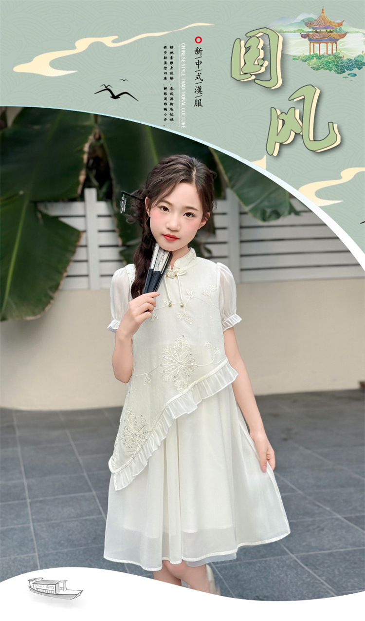 여자 여름 드레스 2025 새로운 스타일 여자 민족 스타일 Hanfu 치파오 스커트 유행 공주 드레스 여름 드레스