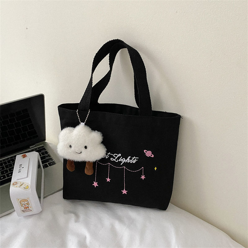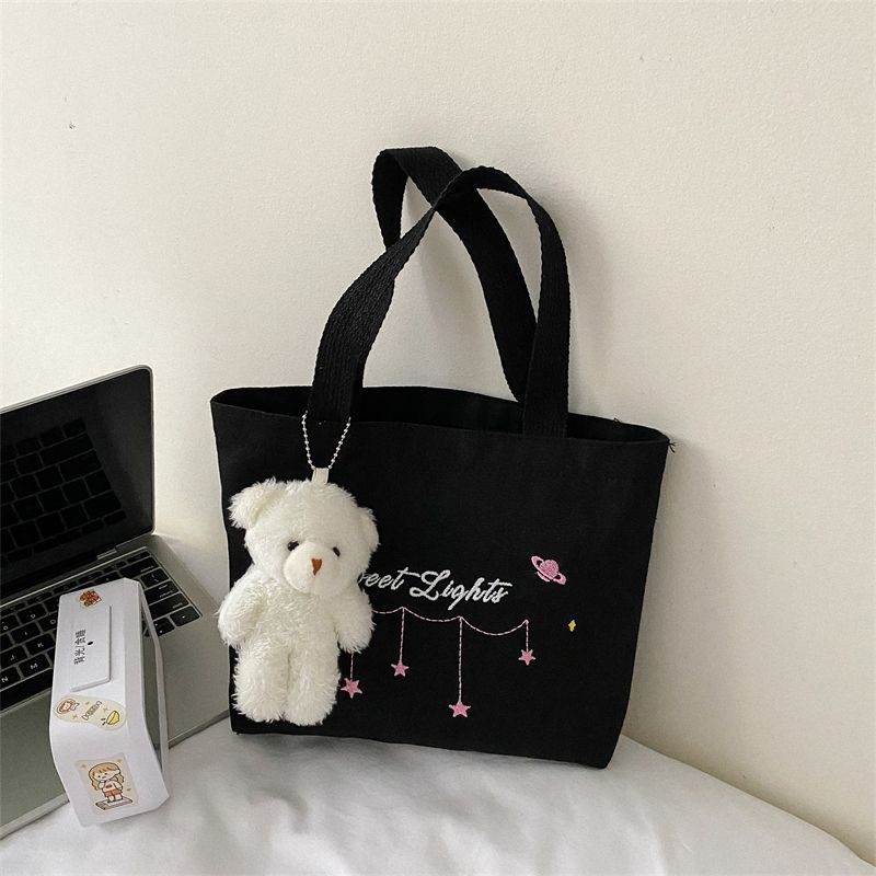 작은 핸드백 캔버스 가방 여성 캐주얼 작은 가방 직장에서 사용하는 천 가방 점심 가방 학생 도시락 가방 지퍼 스타일스토어 가기
