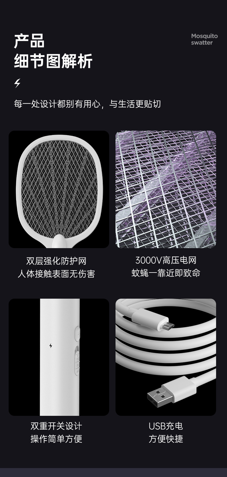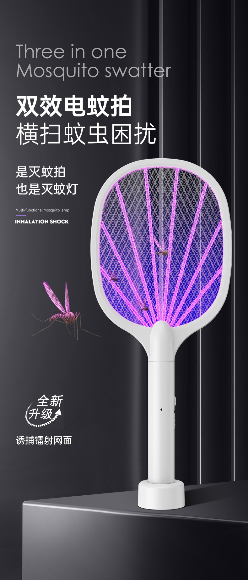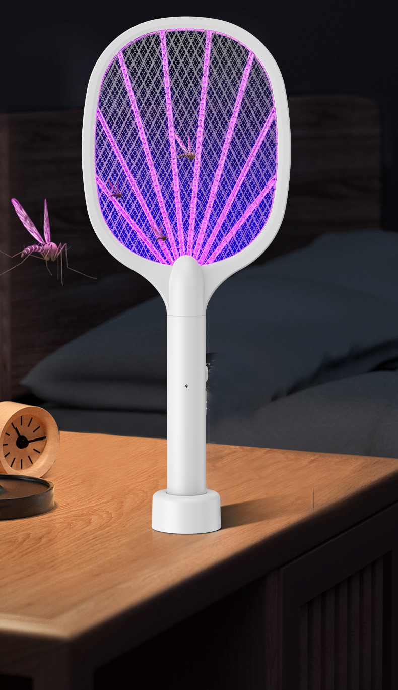 전기 모기채, 충전식 가정용 강력한 리튬 배터리 모기 살해 램프, 2-in-1 모기 구충제 및 모기 살해 유물, 파리채