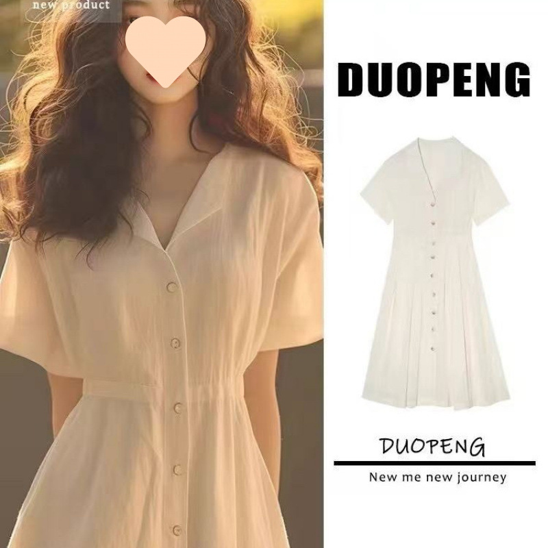 2025春装新款桔梗法式韩系温柔风裙子复古港风高级感白杏色连衣裙